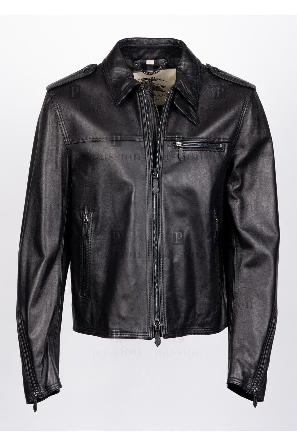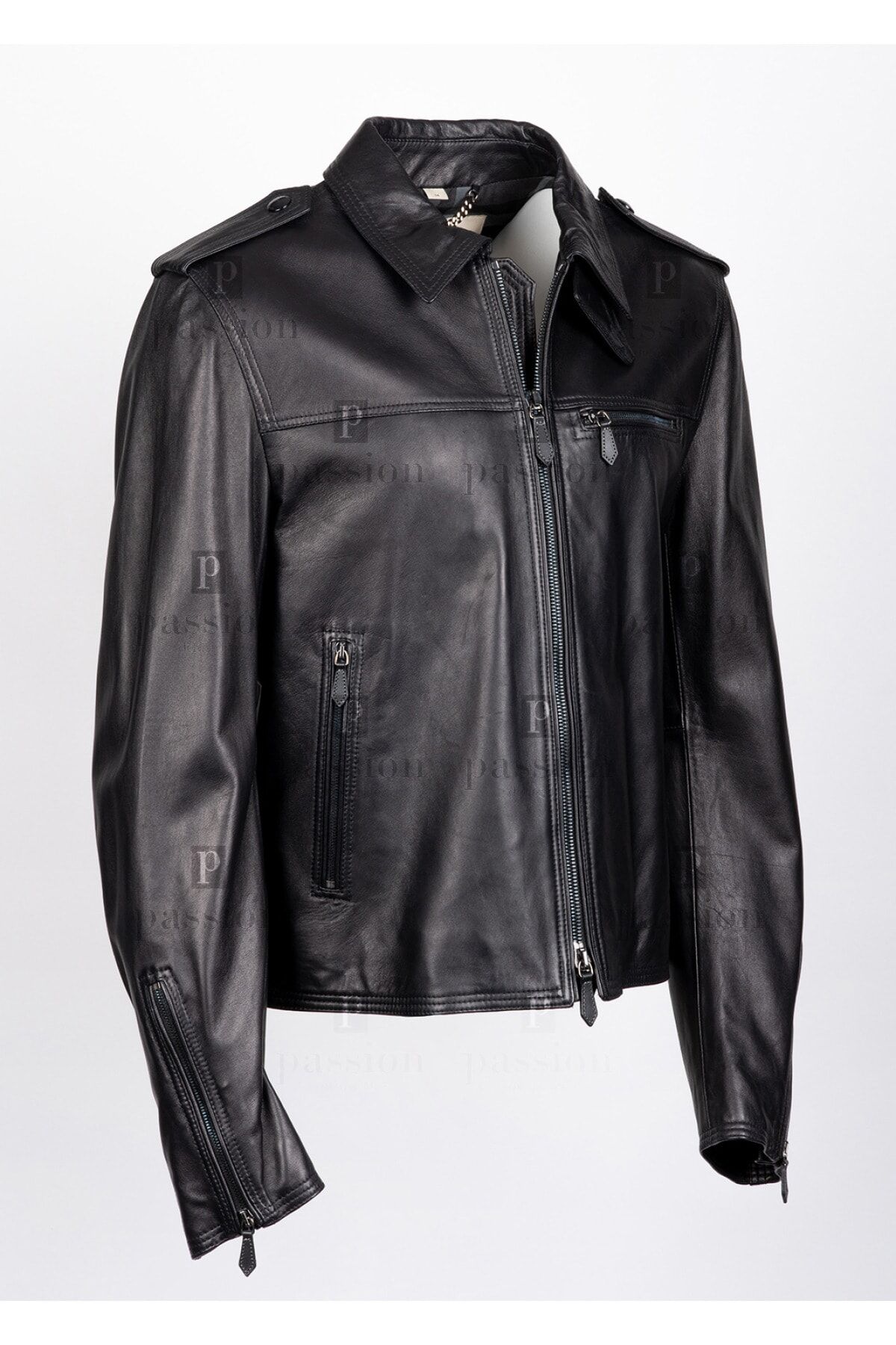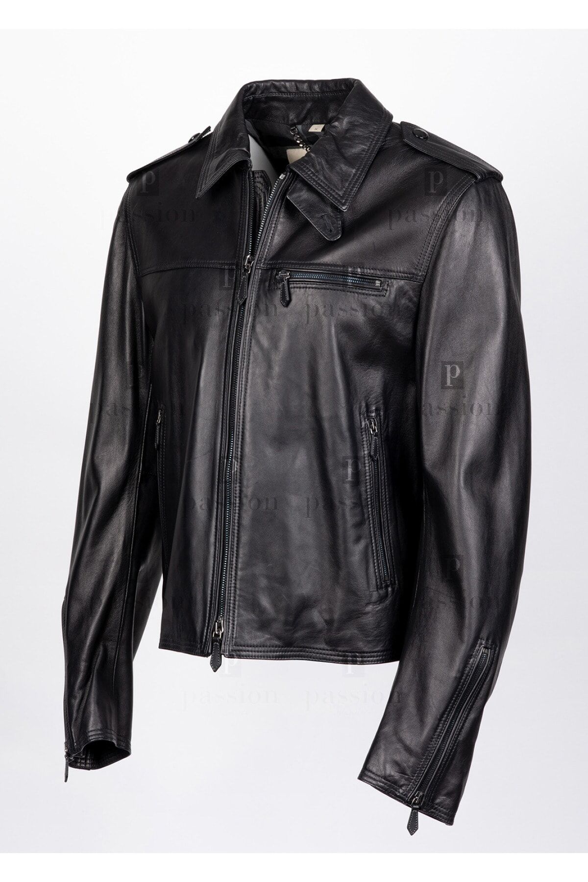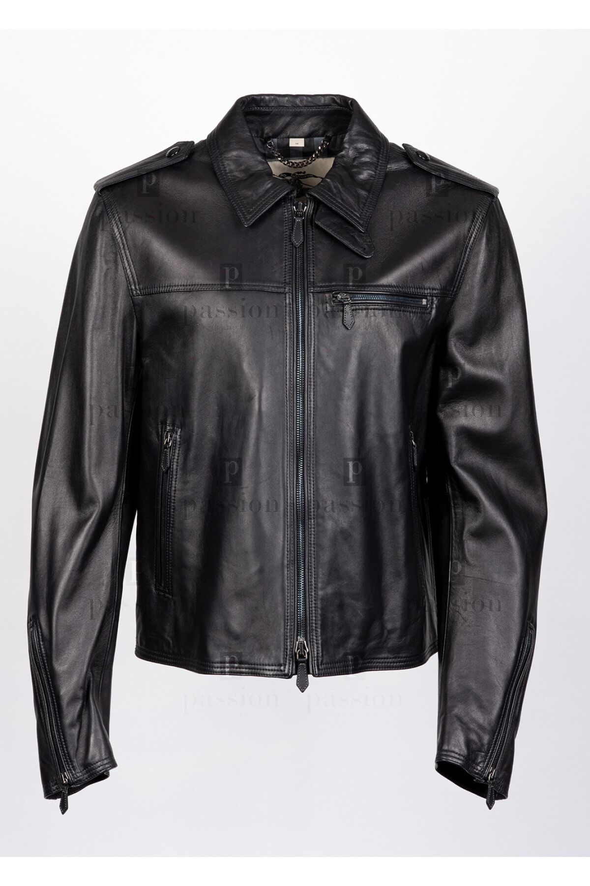 DIŞI %100 HAKİKİ KUZU DERİSİ İÇİ %100 COTTON SİYAH FERMUAR KAPAMALI 3 ADET DIŞ CEP 2 ADET İÇ CEP KOLLAR FERMUAR DETAYLI OMUZLARI APOLET DERİ MONT MADE IN ITALY
