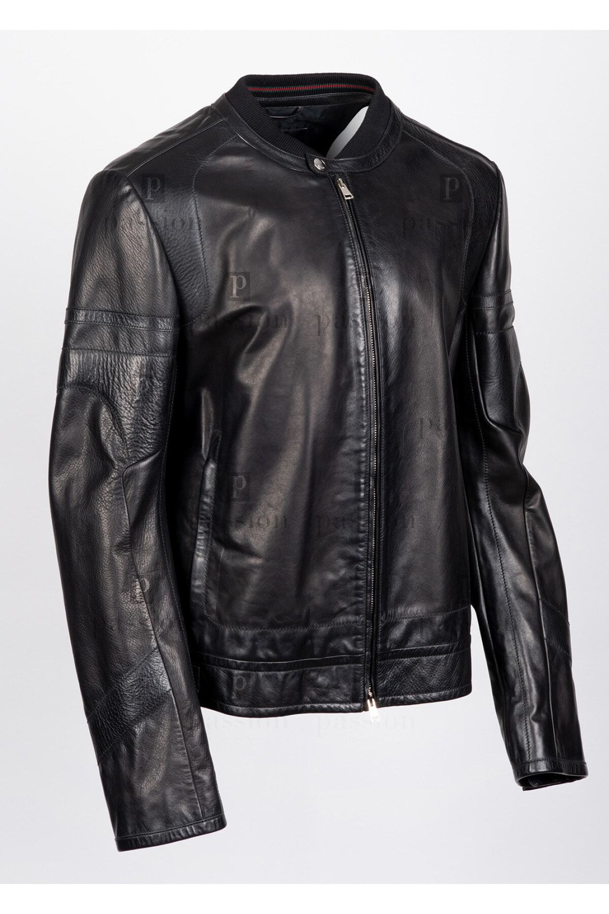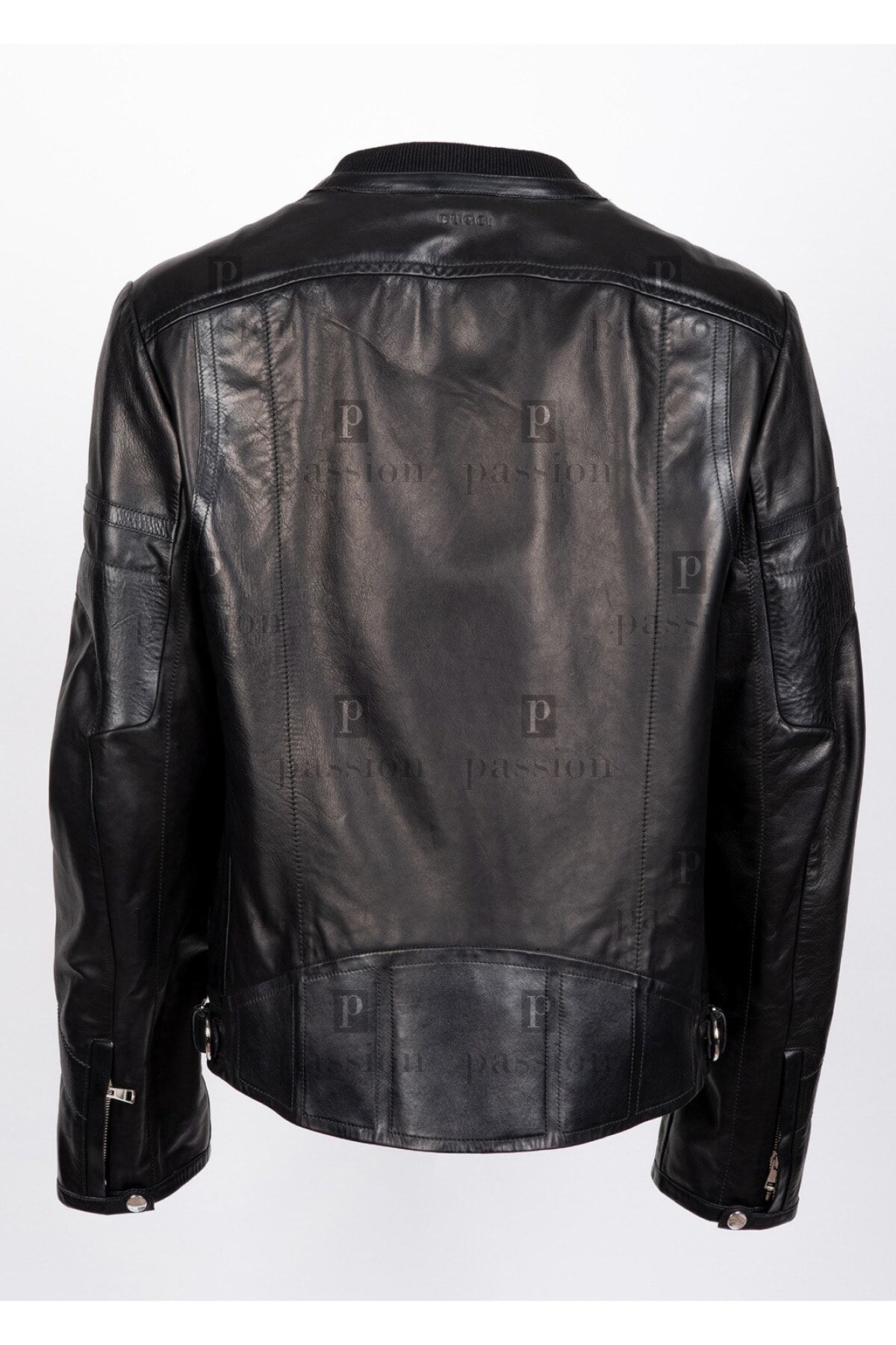 %100 HAKİKİ MAL MUMU İLE SERTLEŞTİRİLMİŞ KUZU DERİSİ SİYAH FERMUAR KAPATMALI KOLLAR DİKİŞ DETAYLI VE FERMUAR DETAYLI BEL KISMI İKİ TARAFLI DARALTMA KEMER DETAYLI 1 İÇ CEP 2 DIŞ CEPLİ MARKA LOGO DETAYLI MADE IN ITALY