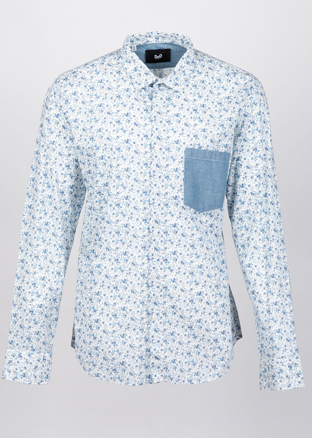 *Çicek Desenli Cep Detaylı Erkek Gömlek