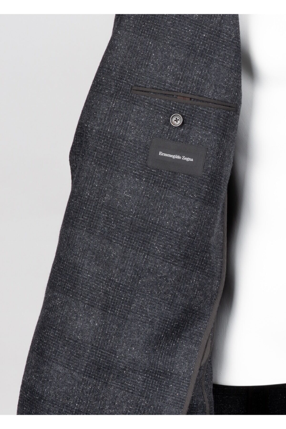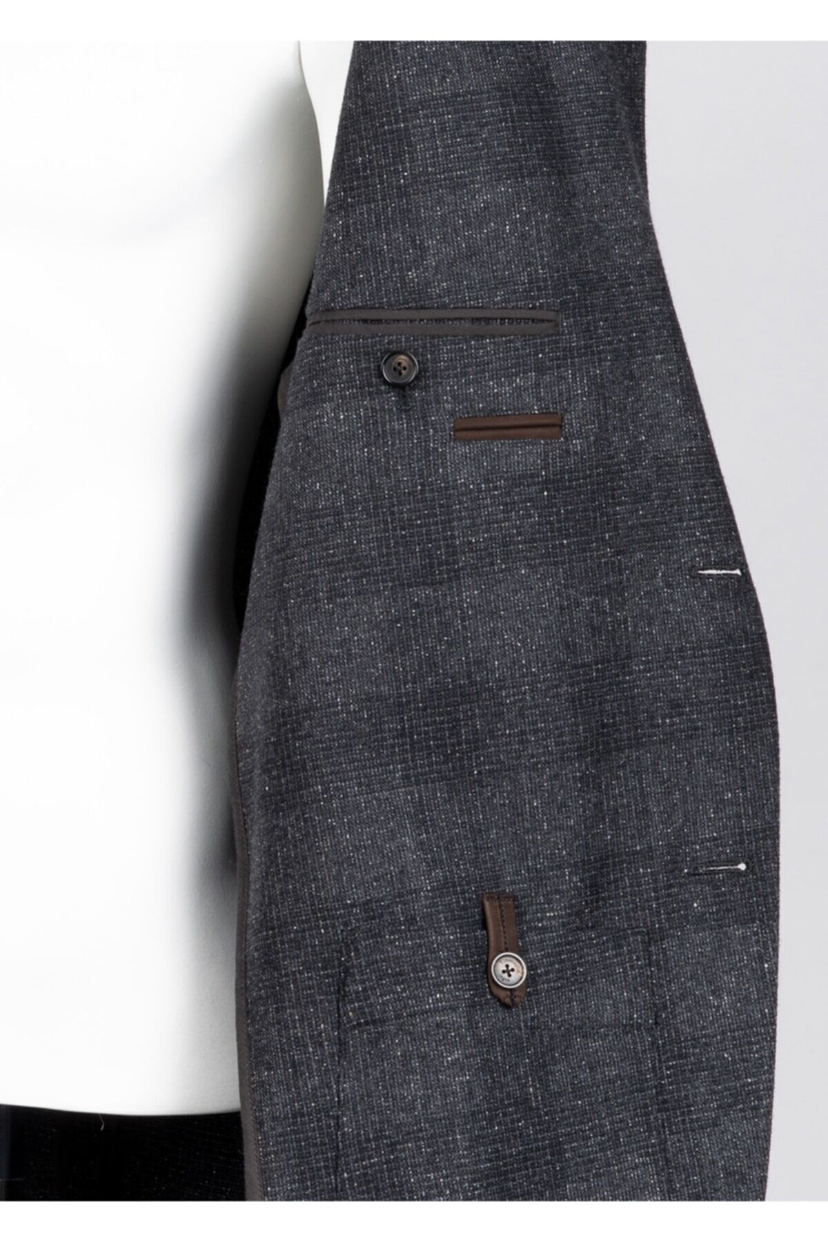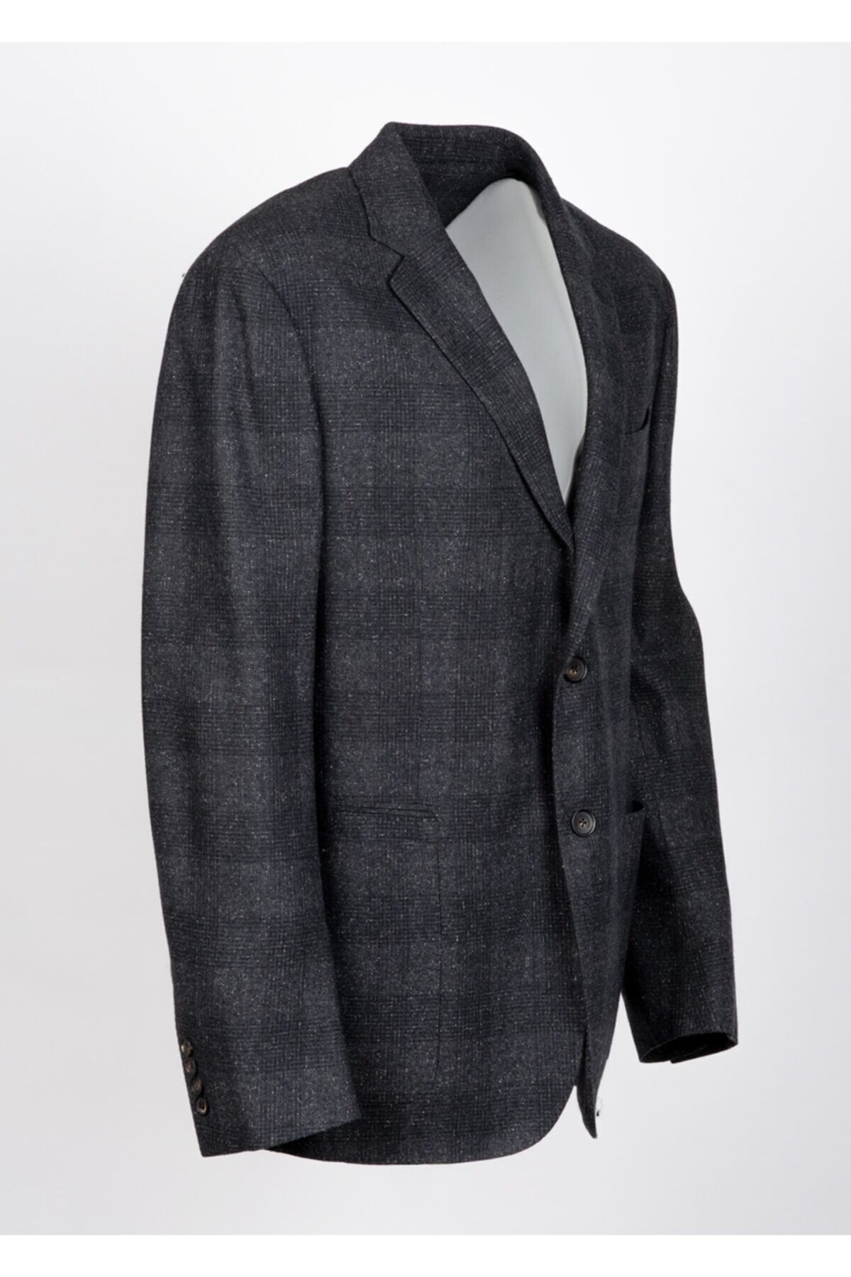 Antrasit Ekose Mikro Desenli %66 Yün %32 İpek %2 Kaşmir Ceket Made in Italy