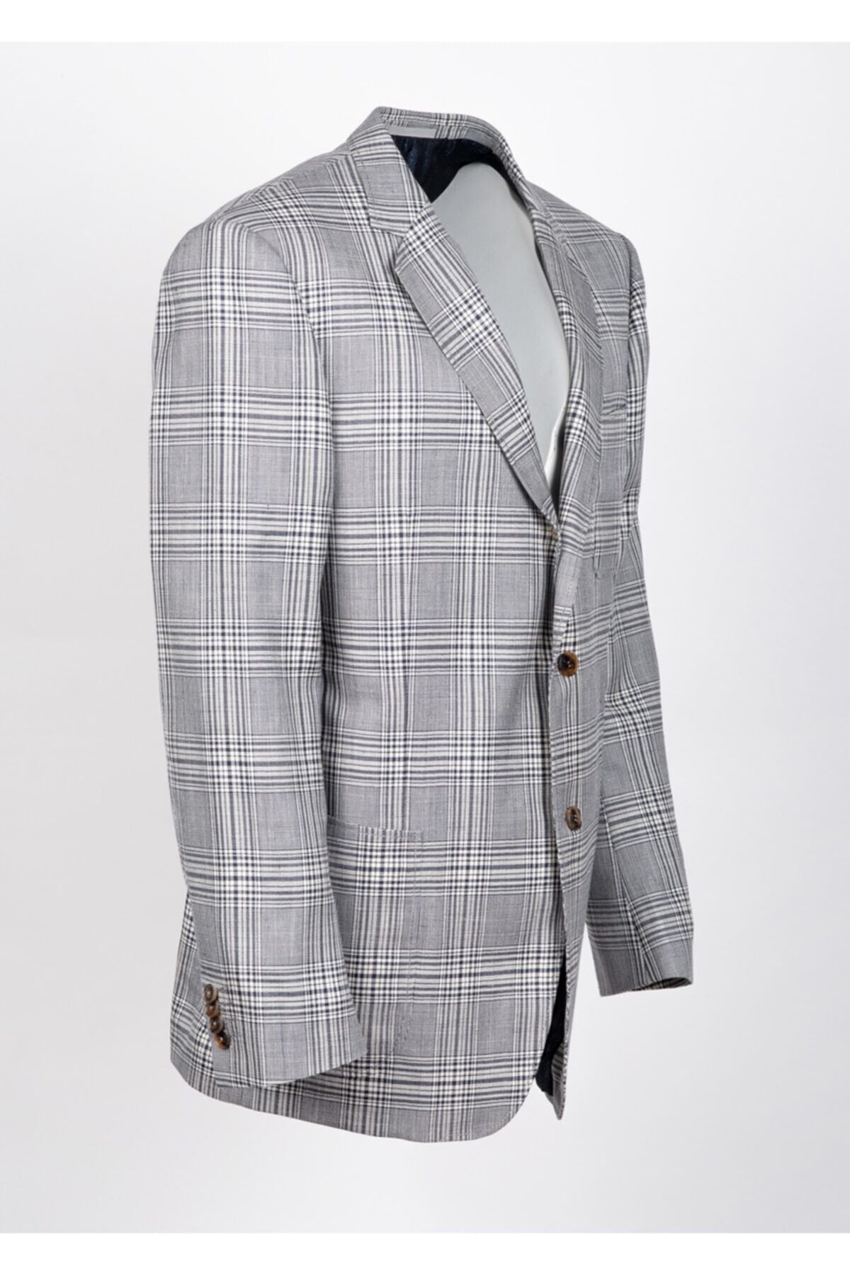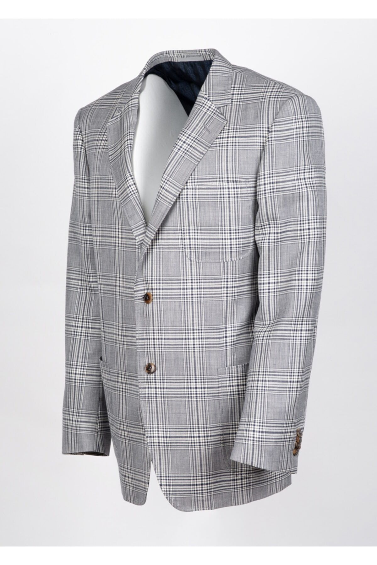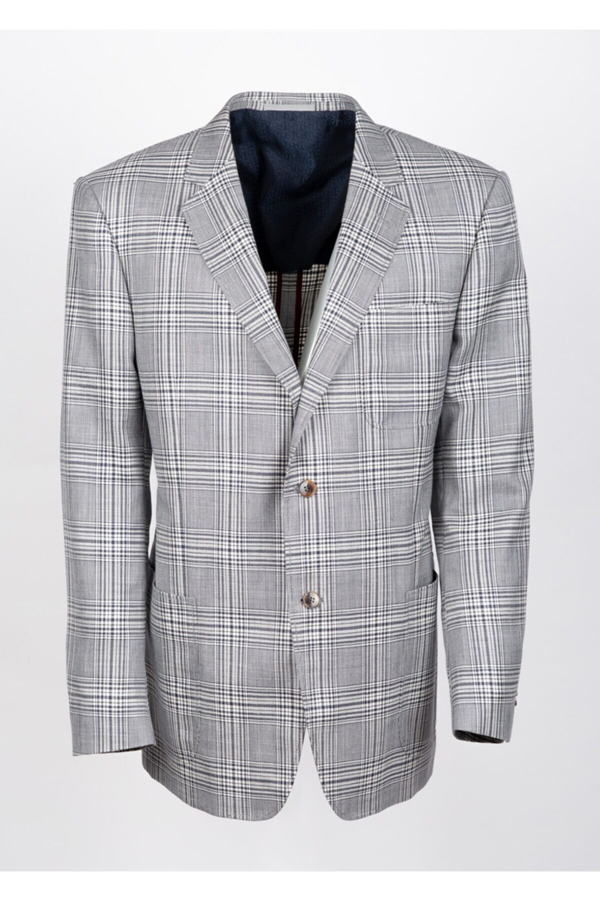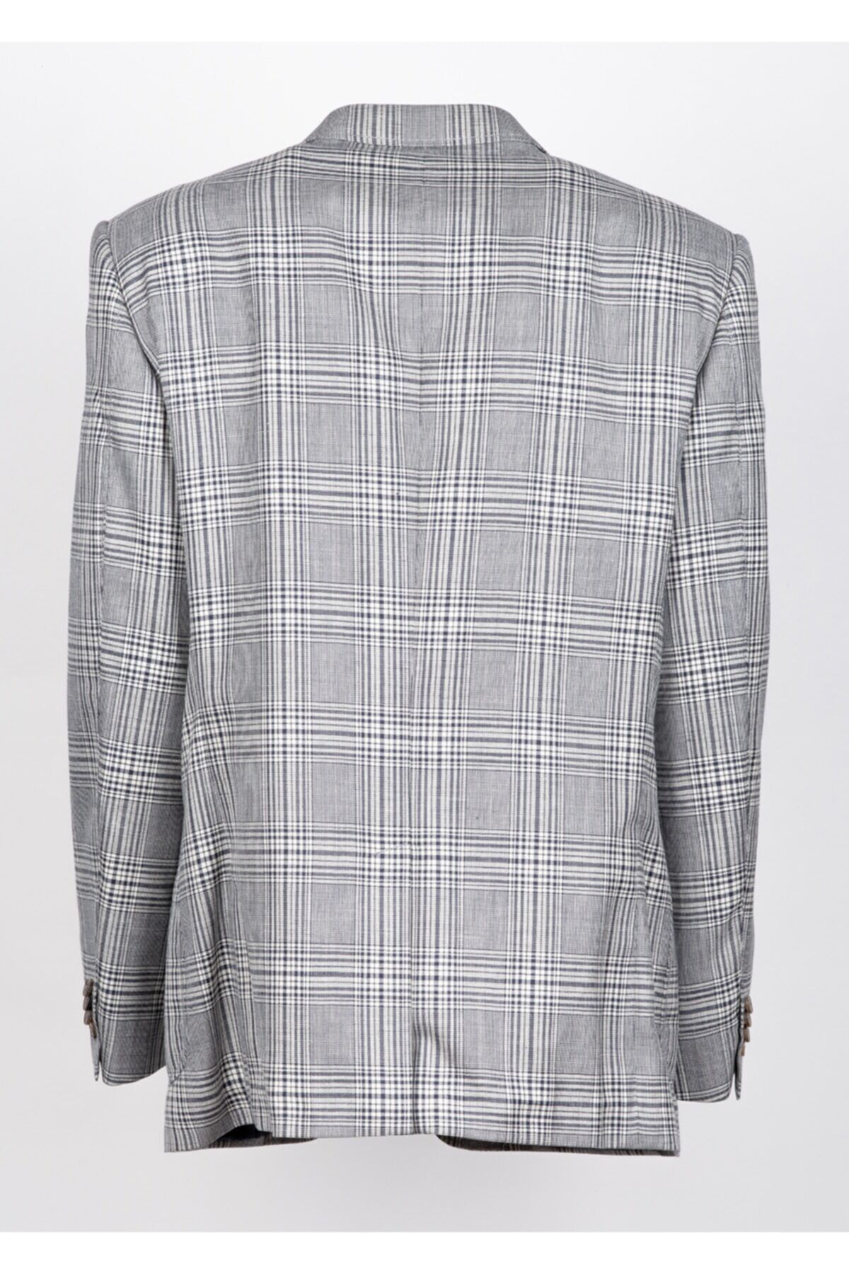 Gri Ekose Desenli % 43 Yün % 32 İpek % 25 Keten Ceket Made in Switzerland