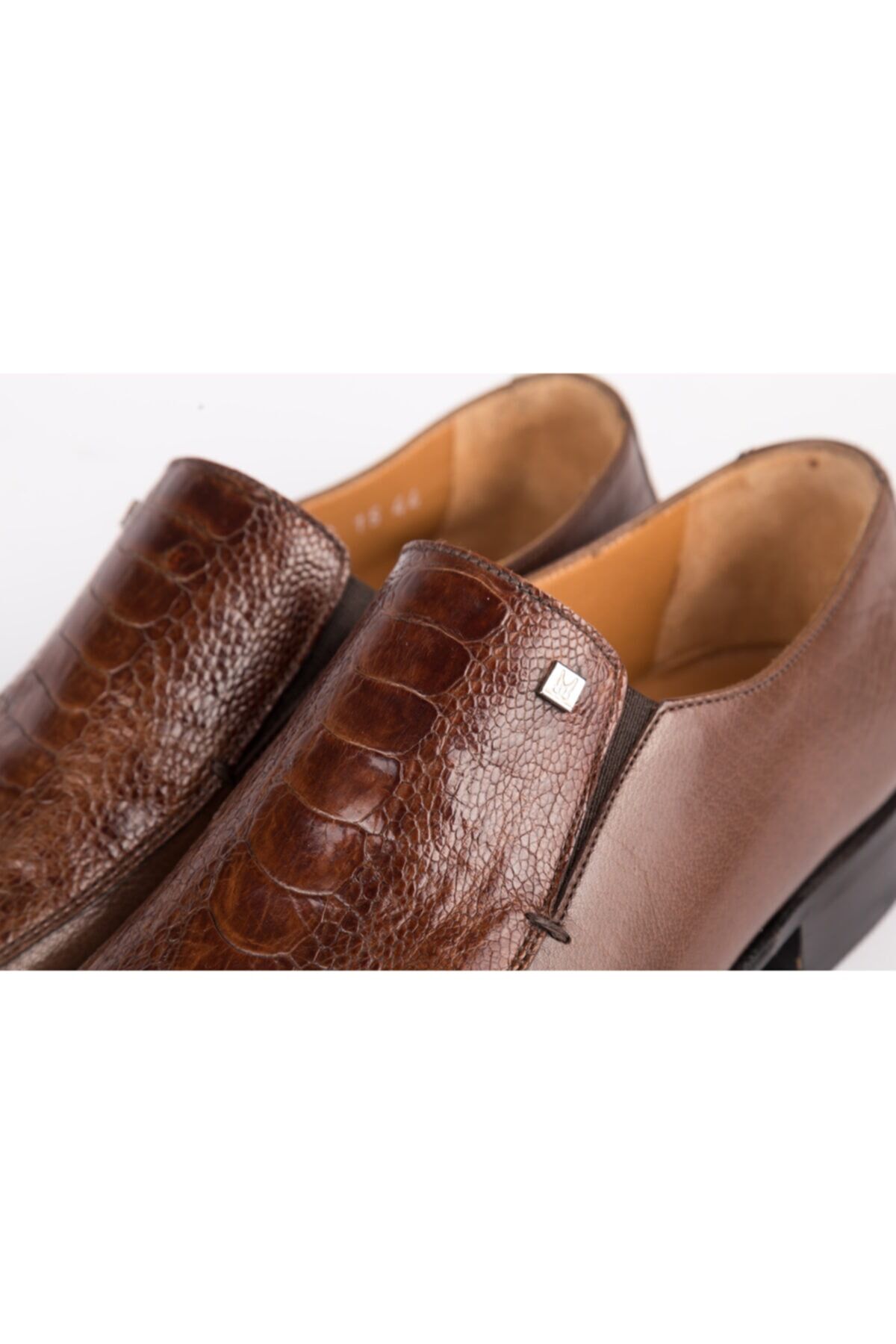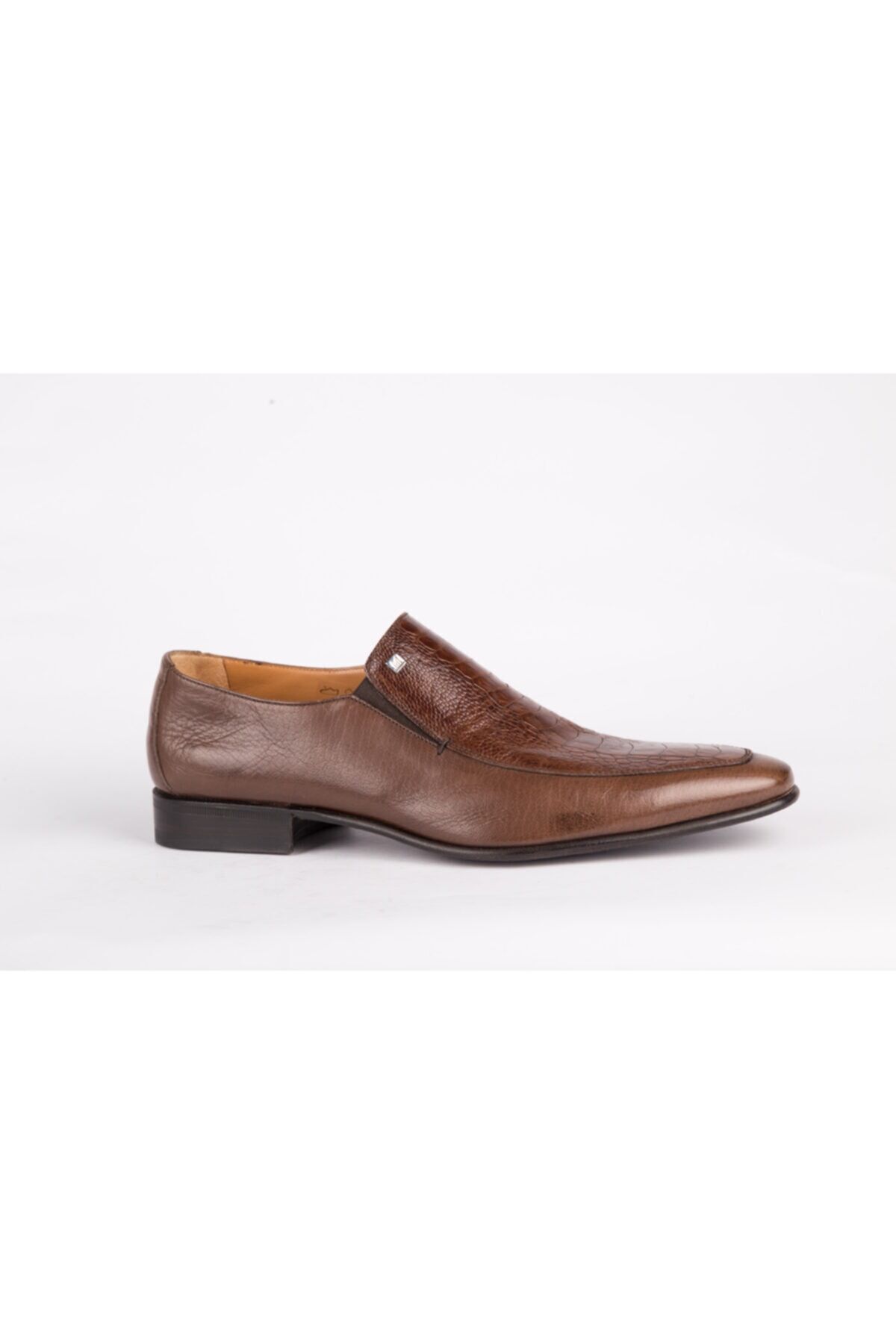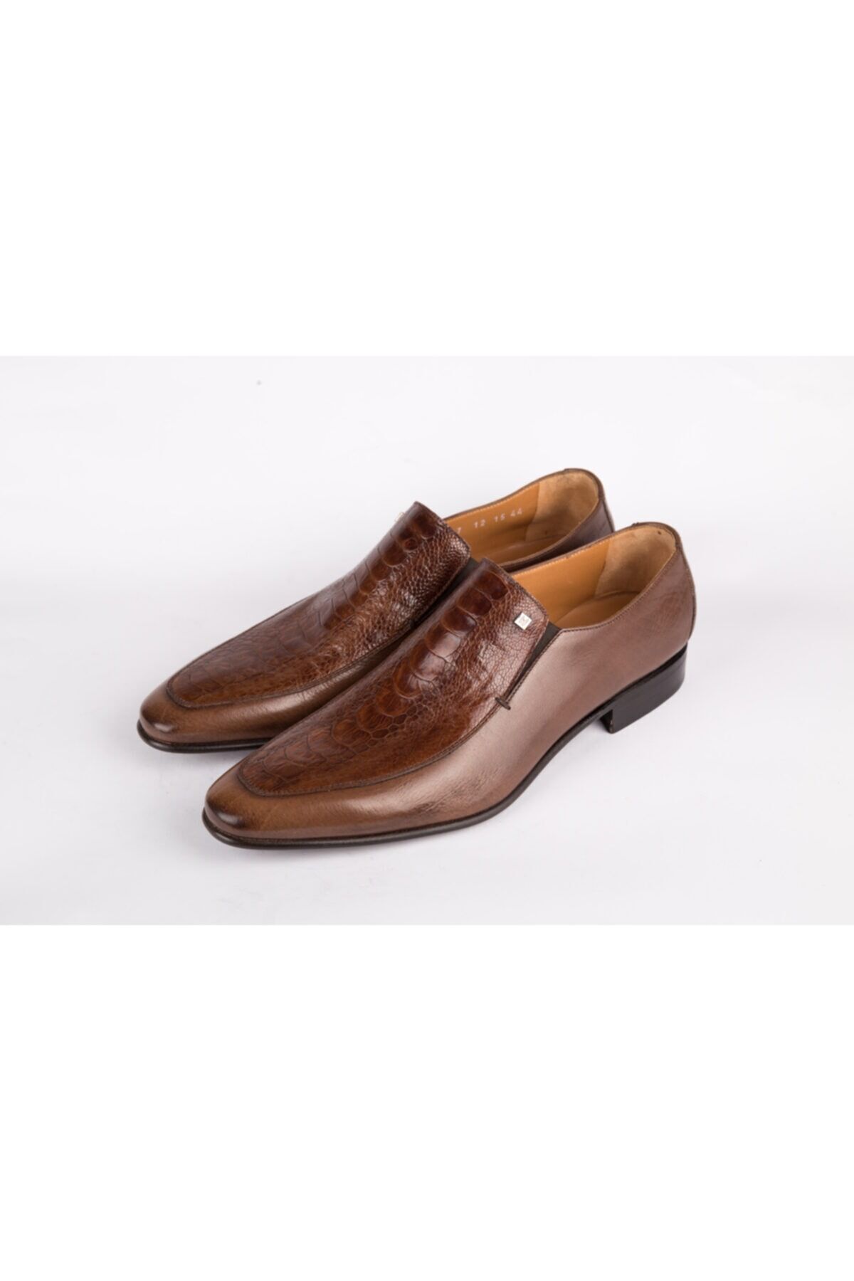 Kahverengi deri,krokodil deri detaylı ayakkabı, made ın ıtaly