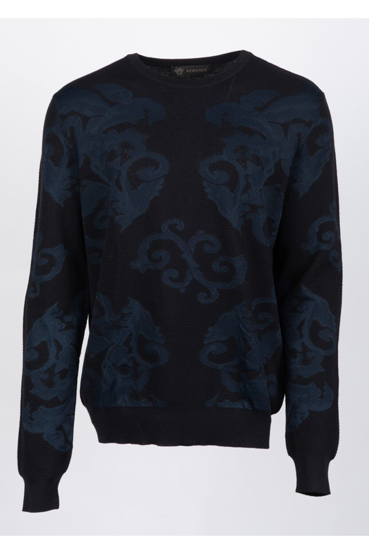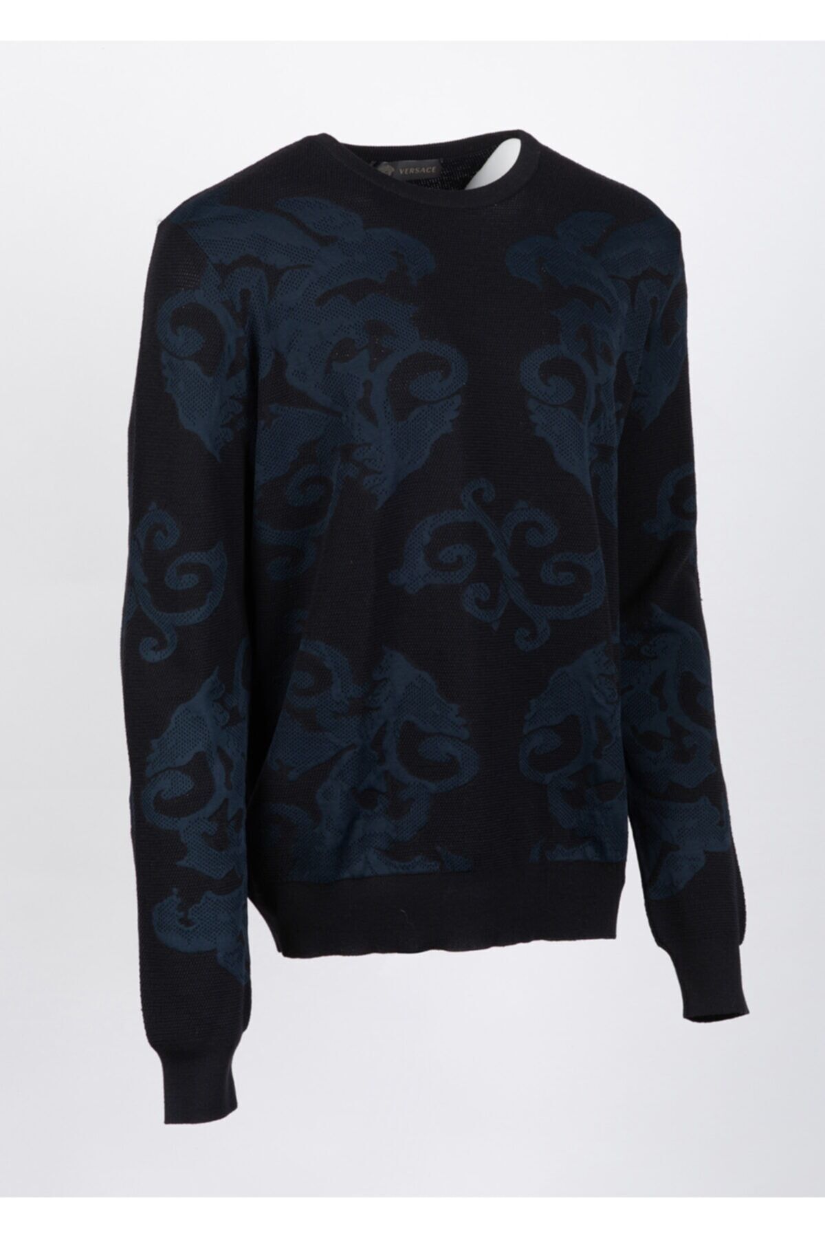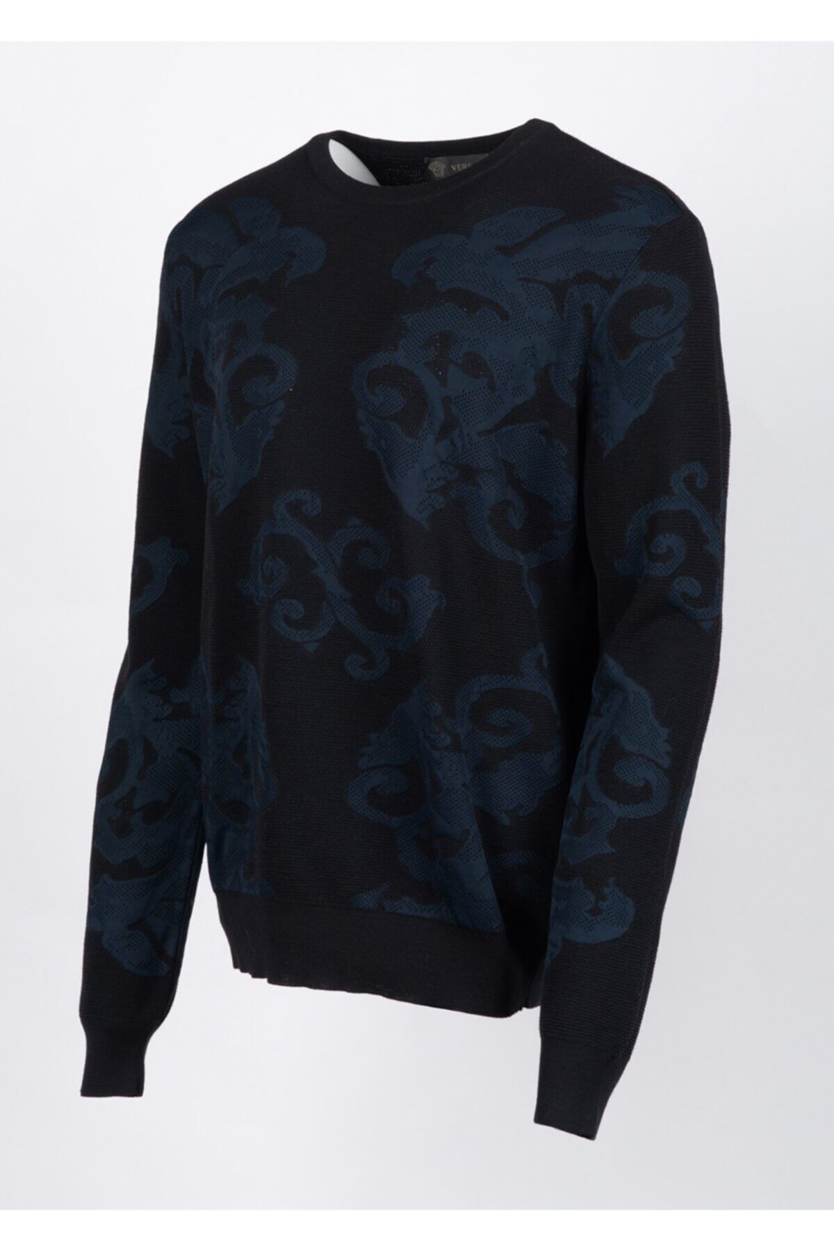 Lacivert Versace desenli %64 lana wool % 36 viscosa Gıannı Versace Kazak Made In Italy