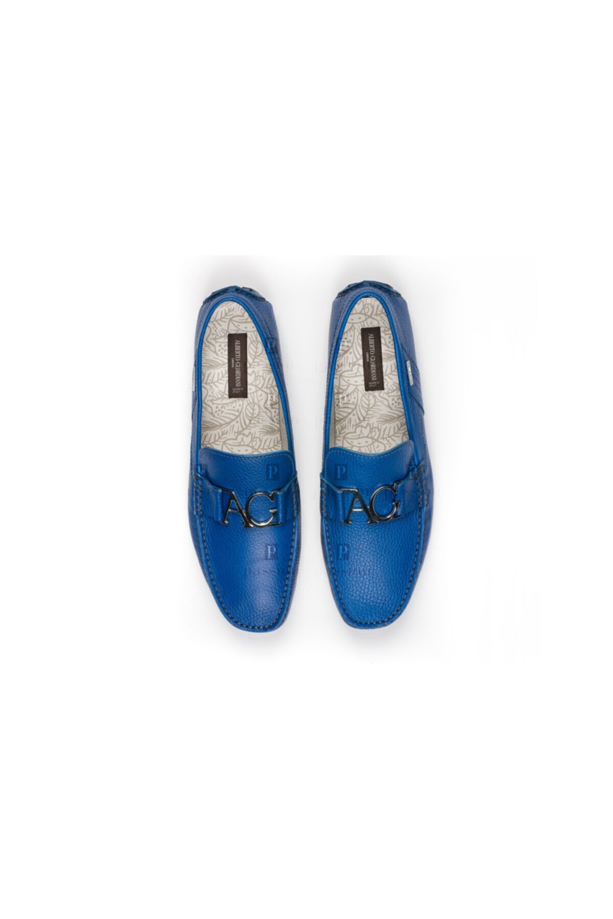 Guardiani drive mavi deri metal logo detaylı loafer