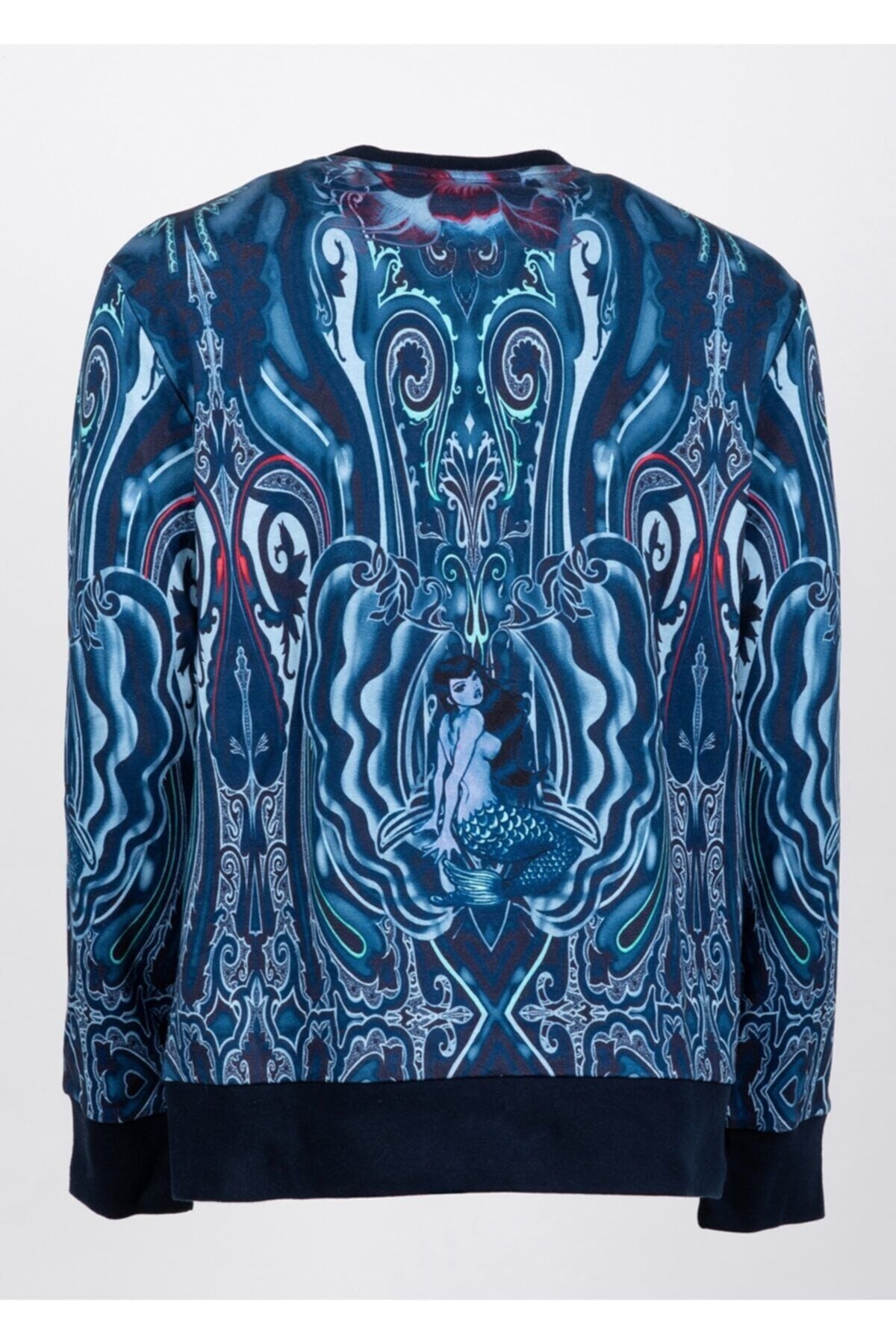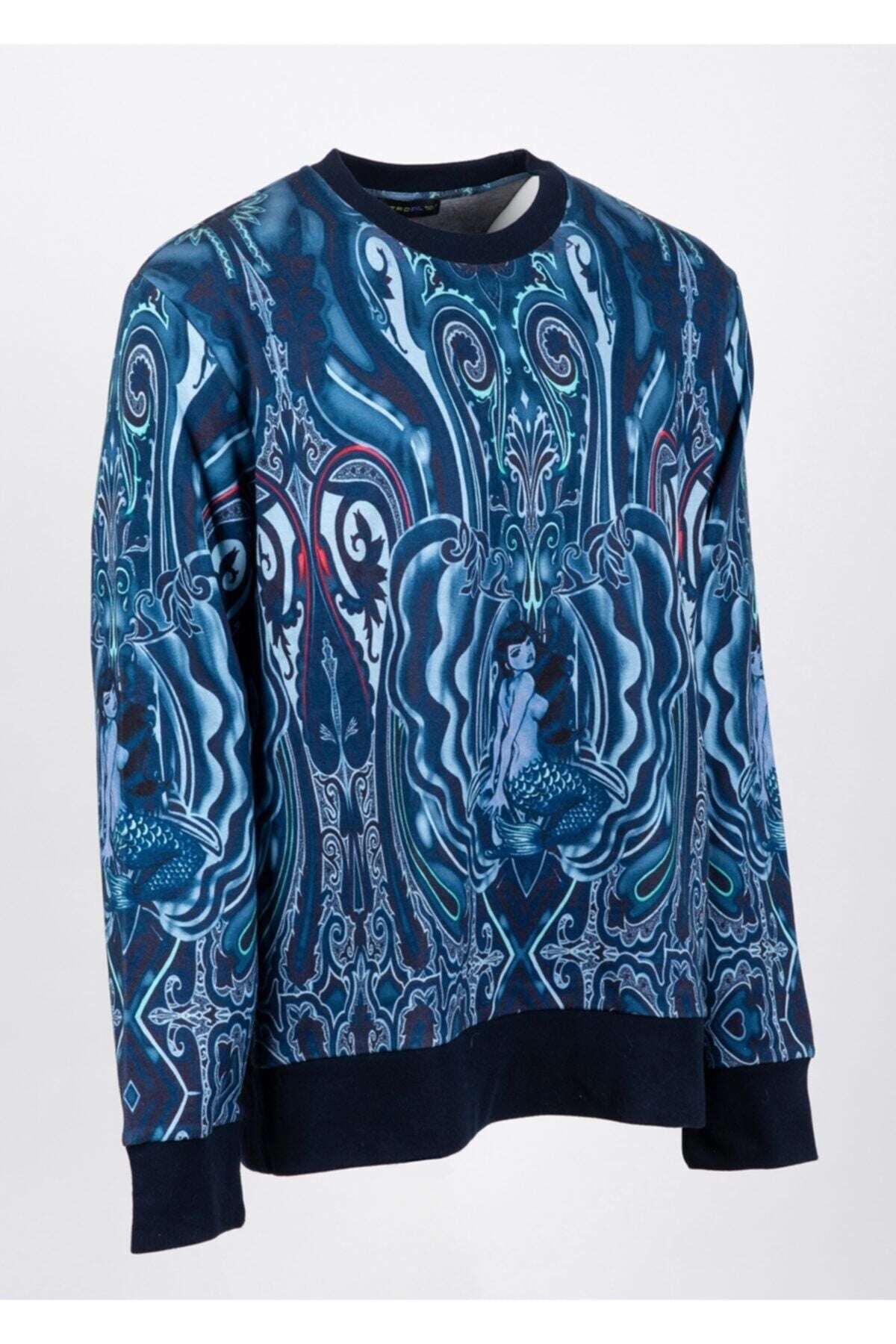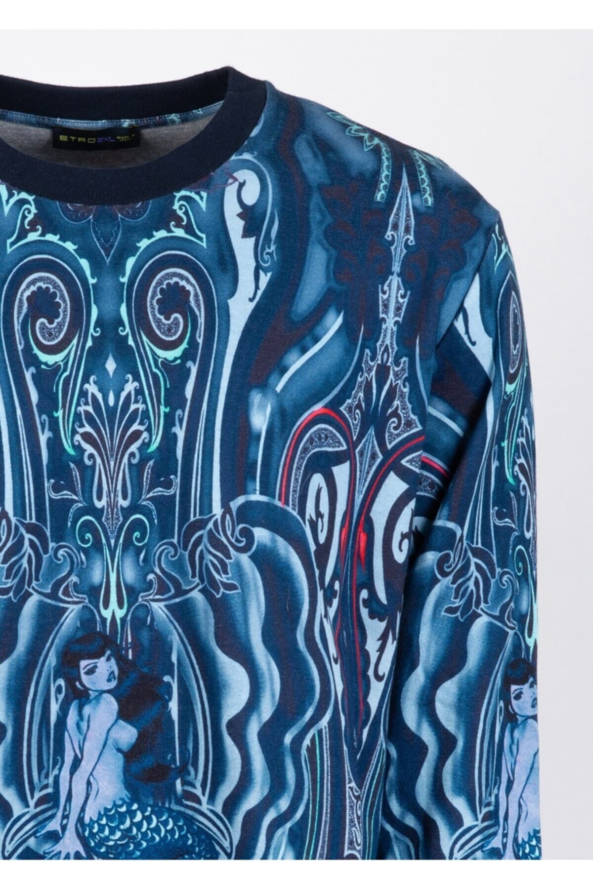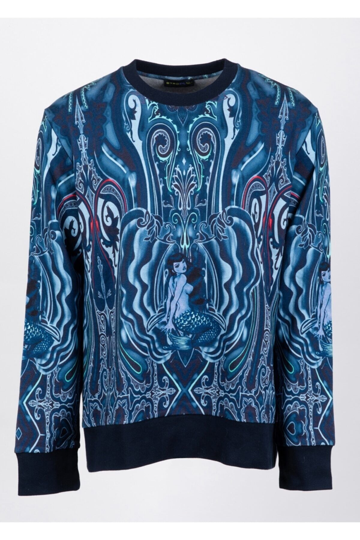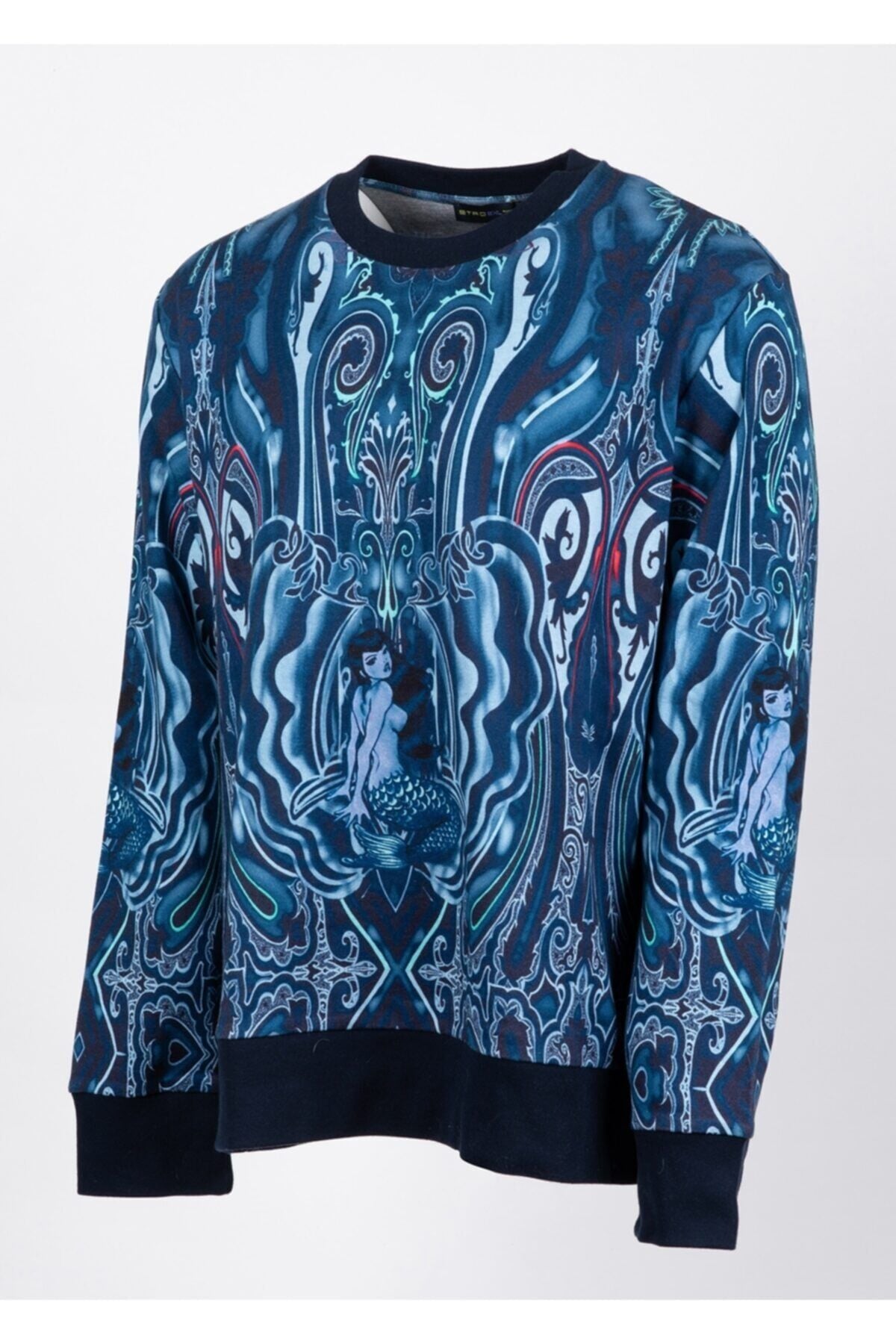 Mavi desen detaylı %92 pamuk % 8 polyester sweatshirt made in ıtaly