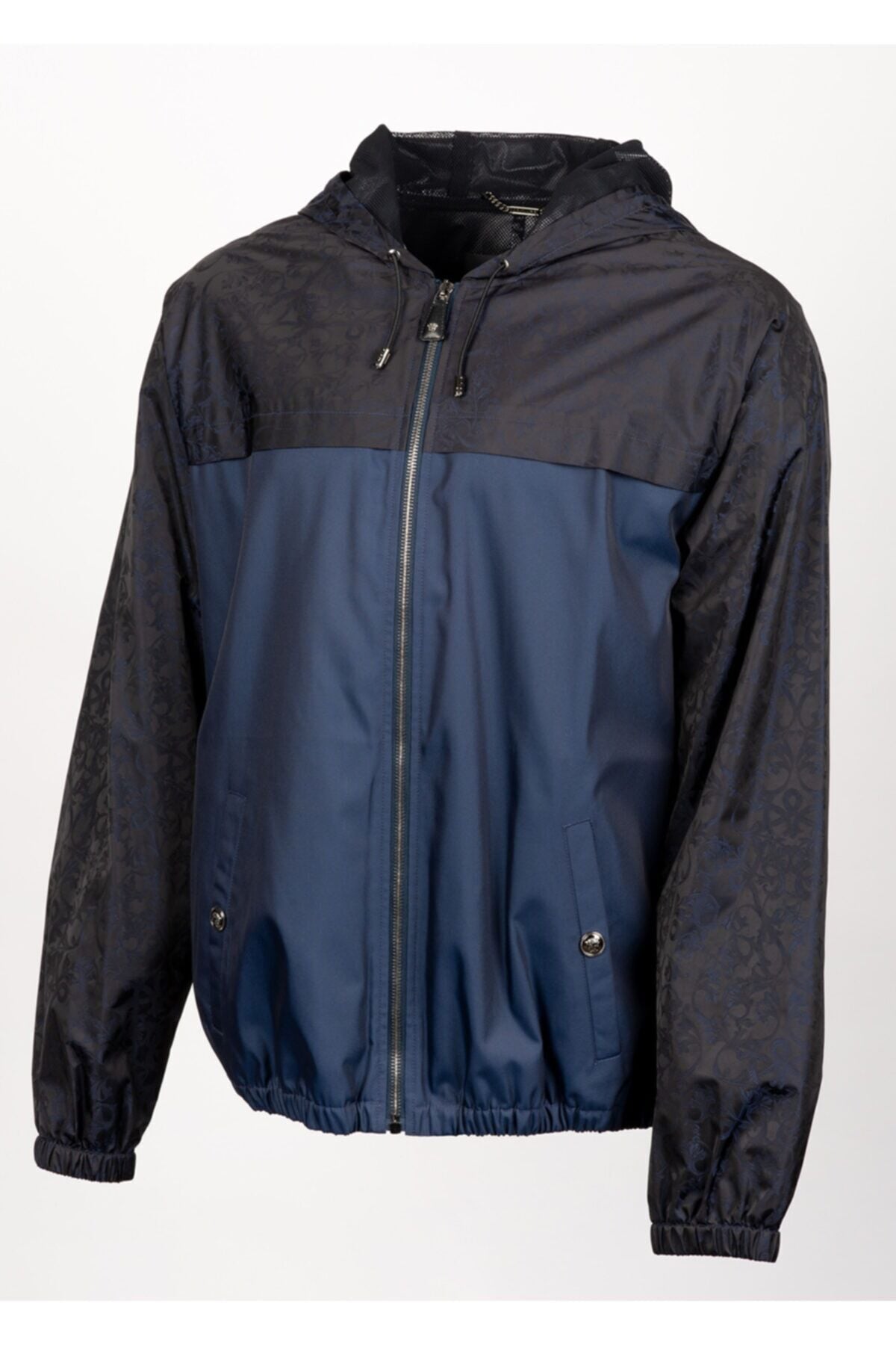 Lacivert şal desenli fermuar kapamalı metal düğme kapüşon ve logo detaylı dış kumaş 1 : %74 polyamide %26 poliüretan dış kumaş 2: %100 polyester astar: 83 polyamide %17 elastan mont made in ıtaly