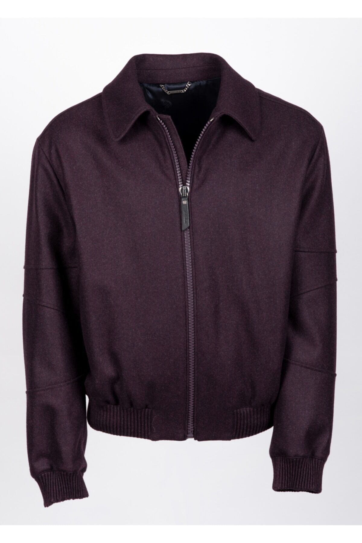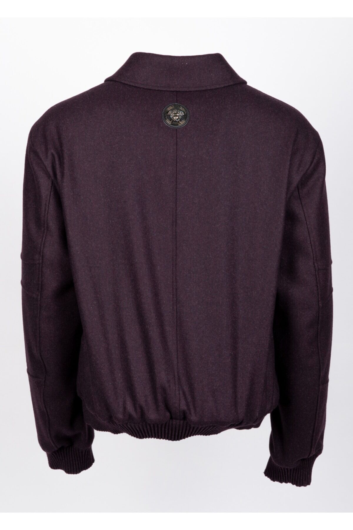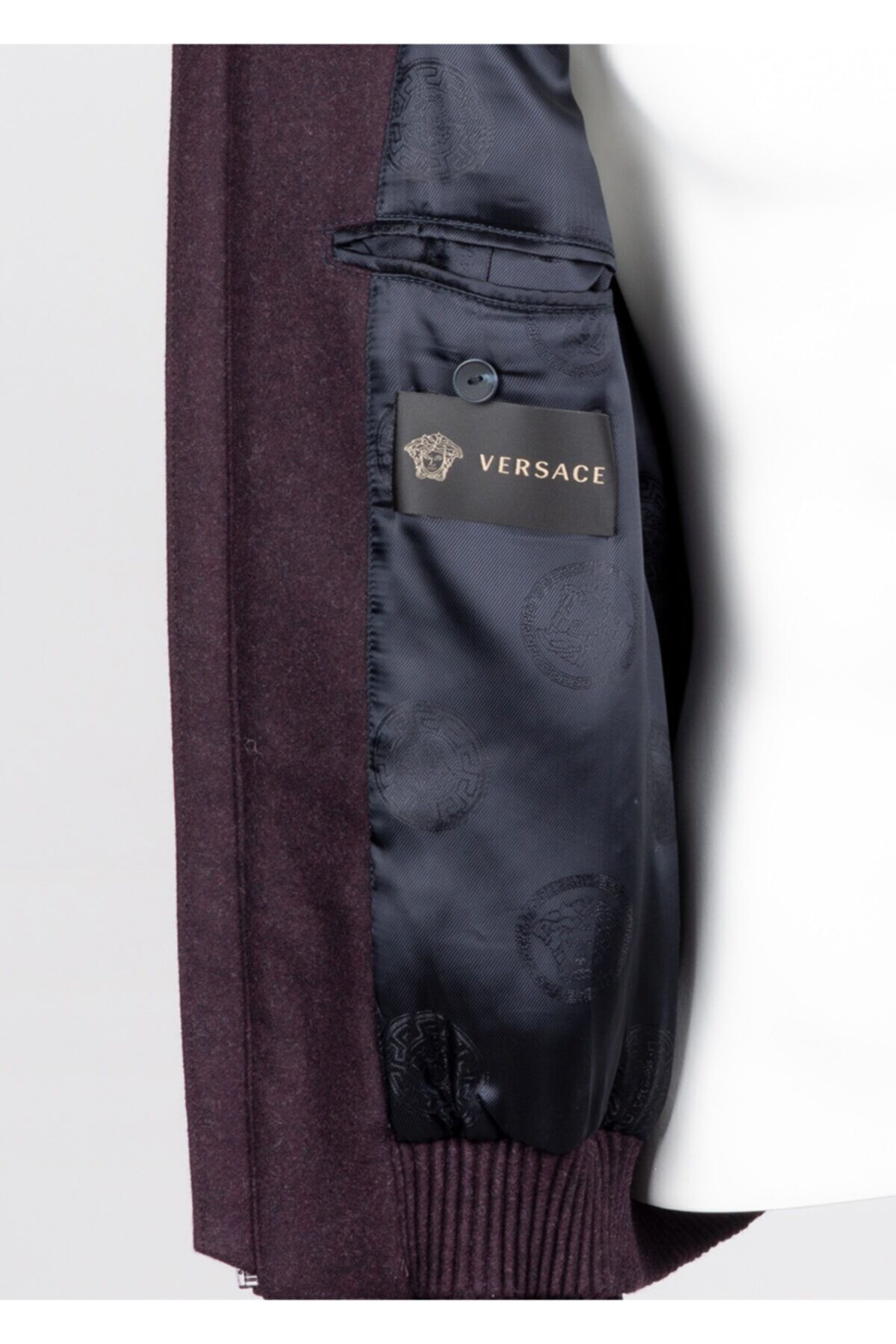 Bordo fermuar kapamalı % 100 lana virgin wool ,kolları ve etek uçları ribanalı Gıannı Versace deri detaylı mont ,Made In Italy
