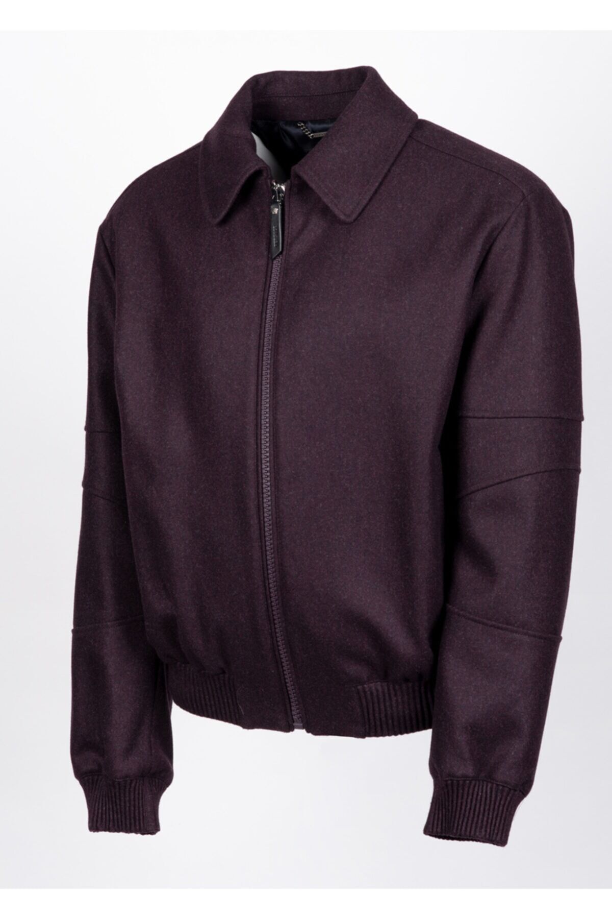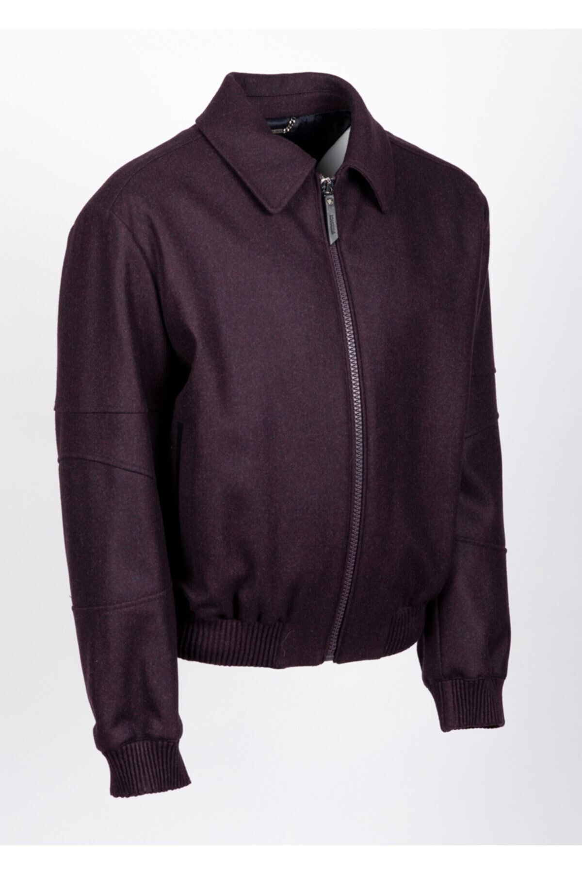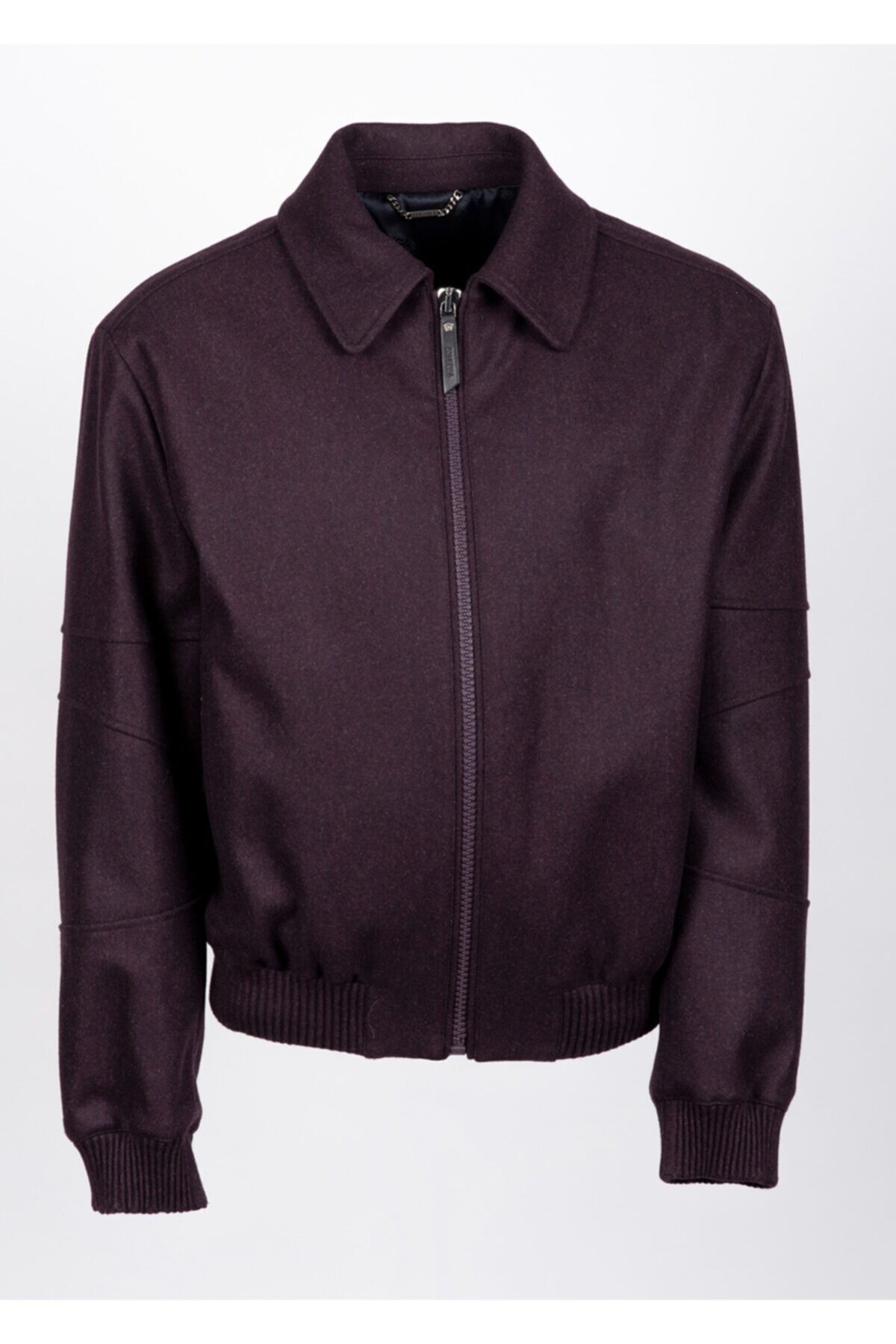 Bordo fermuar kapamalı % 100 lana virgin wool ,kolları ve etek uçları ribanalı Gıannı Versace deri detaylı mont ,Made In Italy