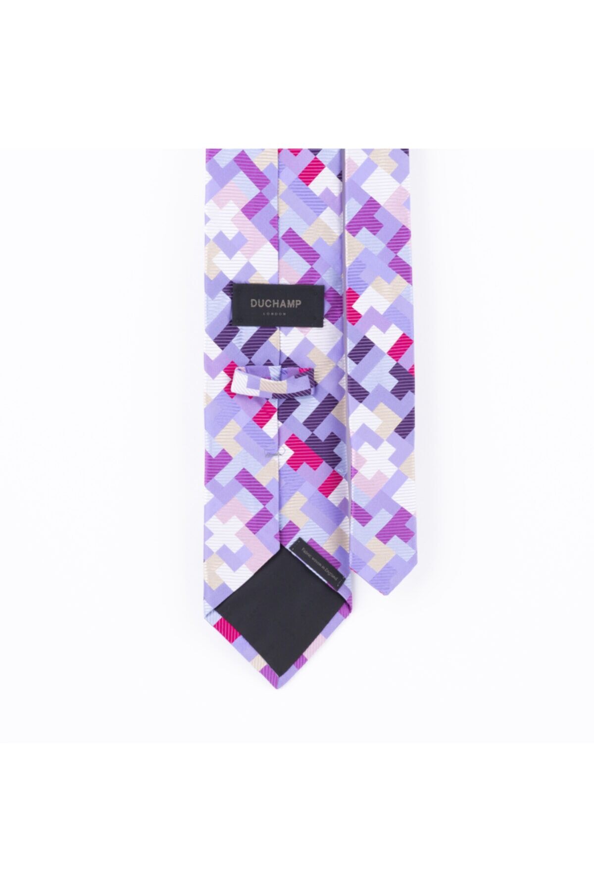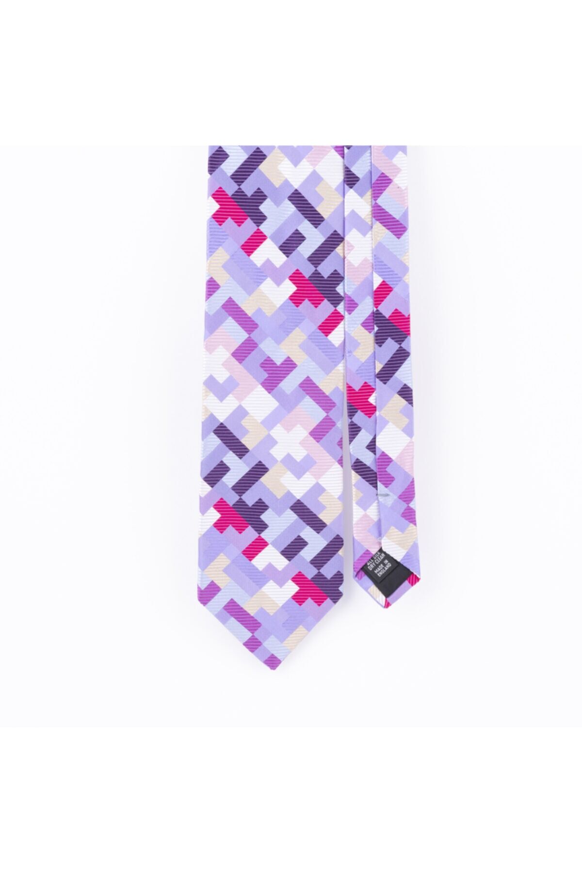 Lila çok renkli geometrik desenli ipek kravat genişlik:8,5 cm made in england