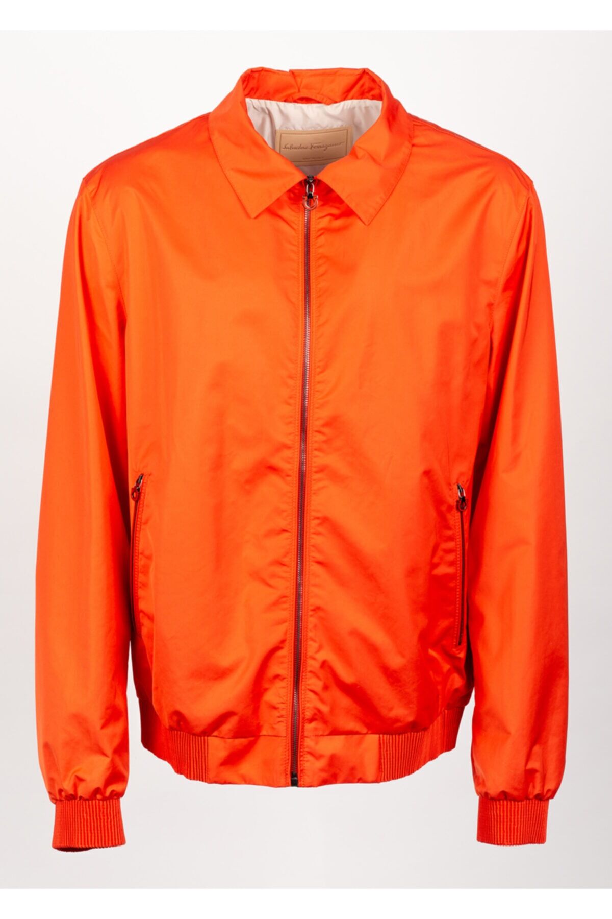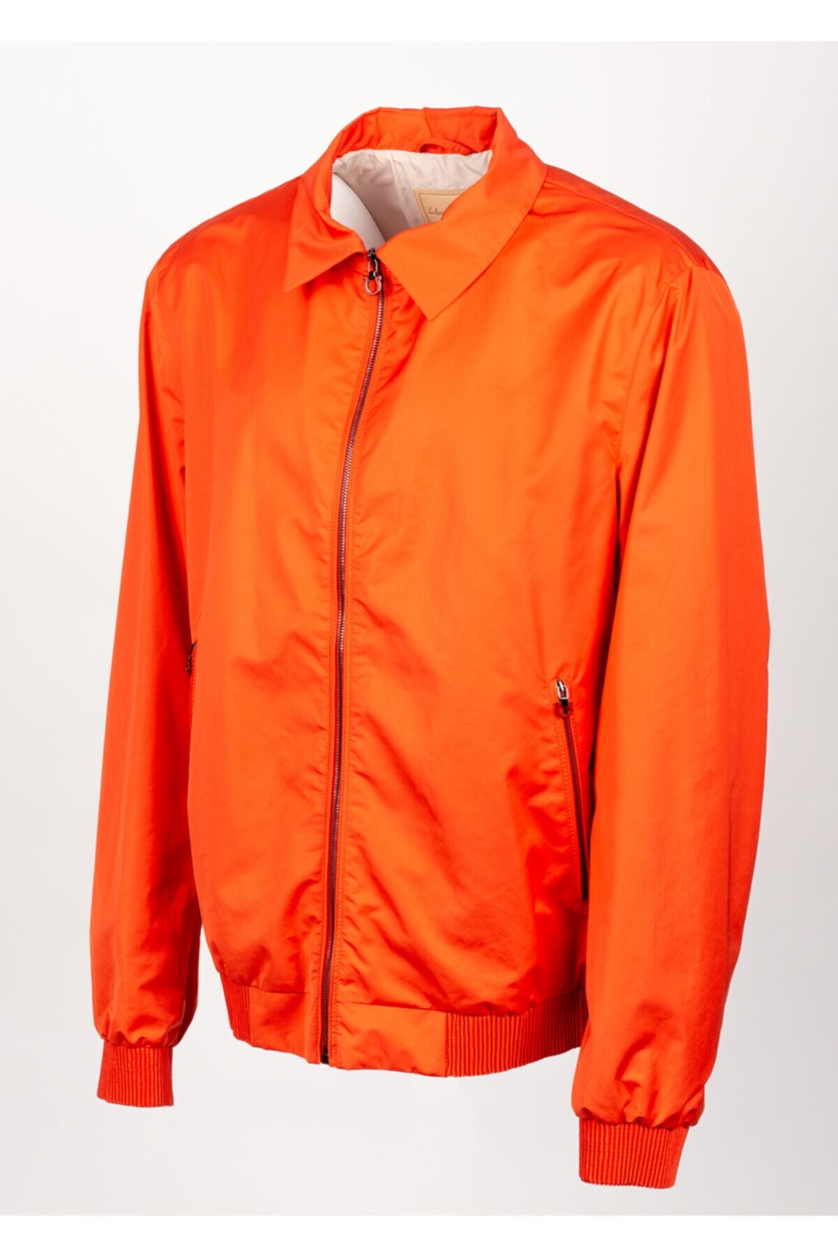 Turuncu Fermuar Kapamalı Logo Detaylı ,kollar ve etek uçları ribanalı polo yaka Mont Made in İtaly