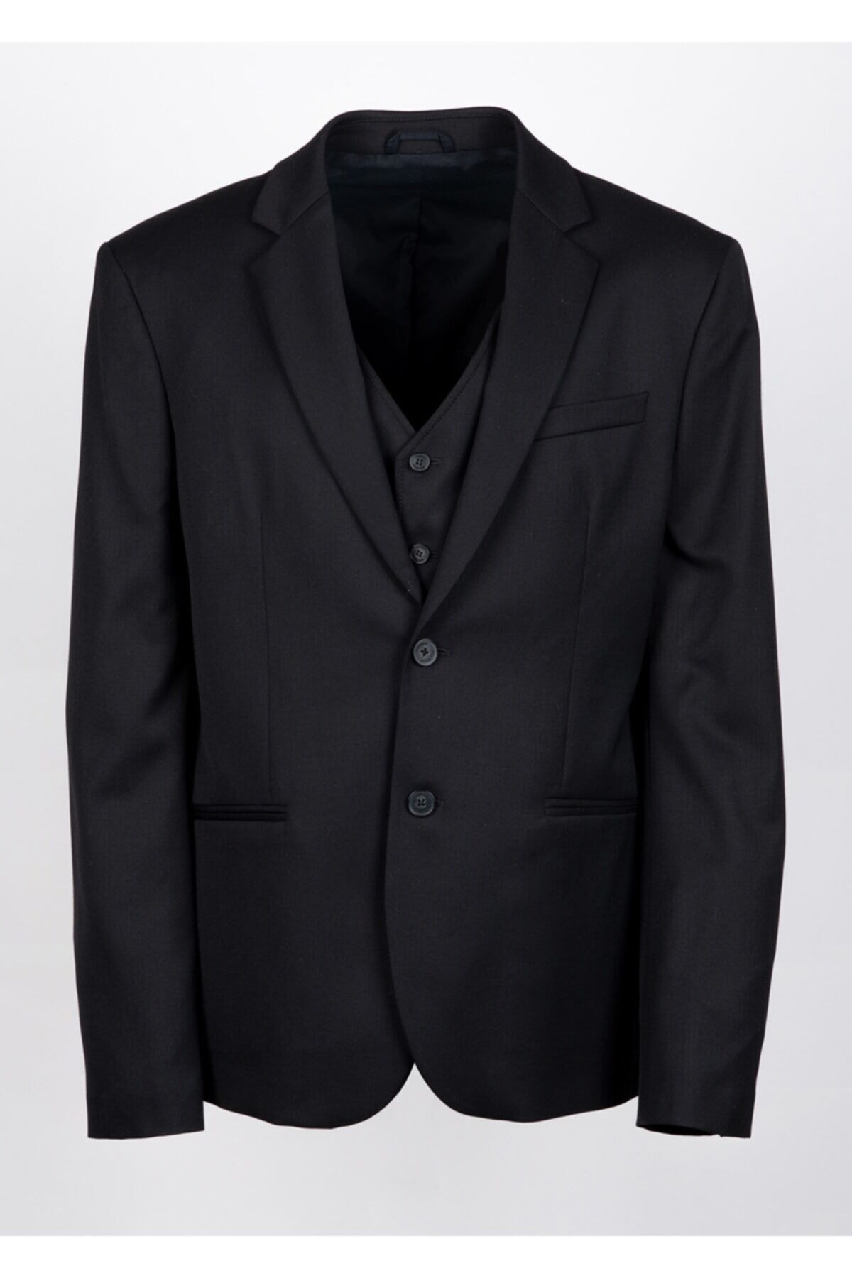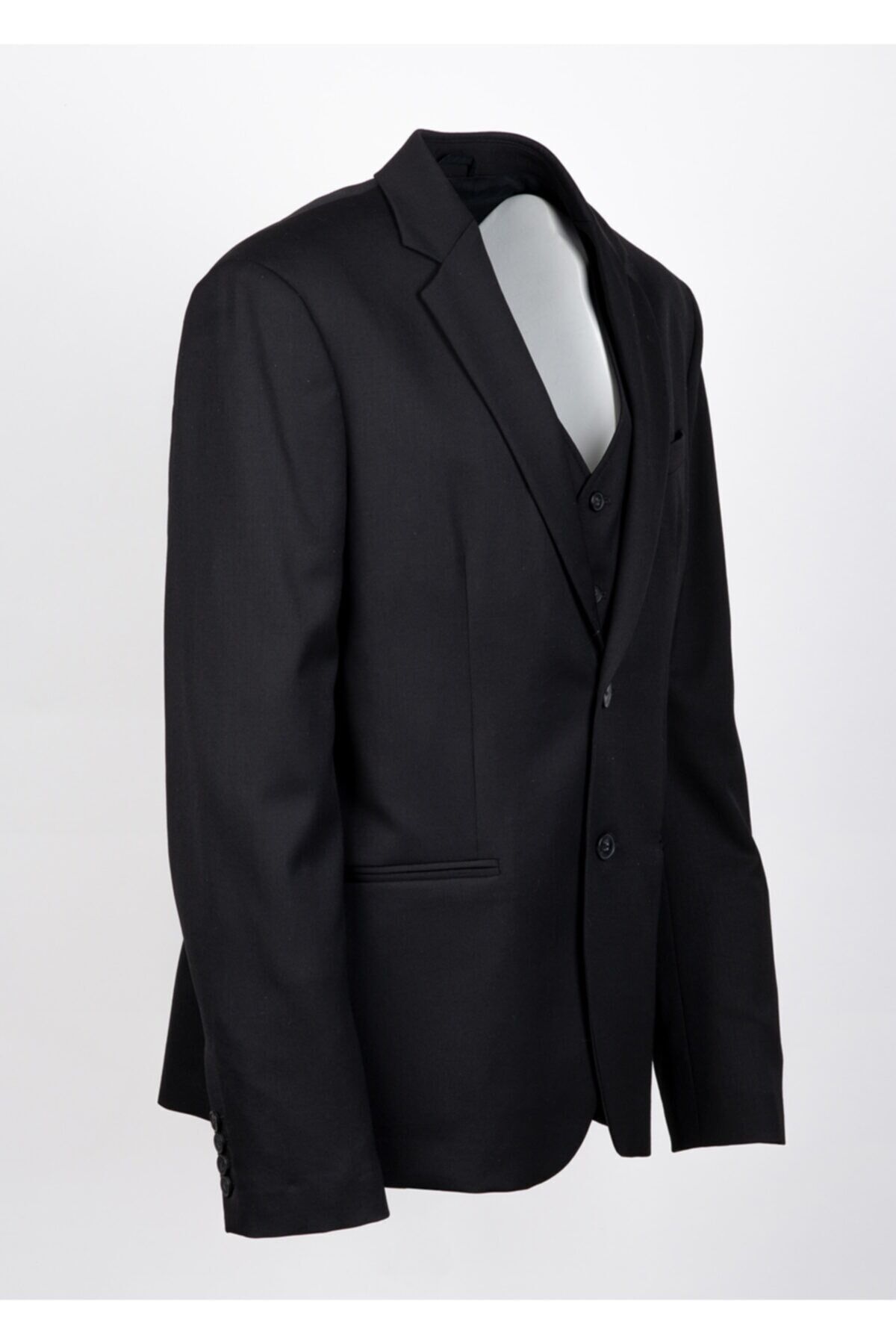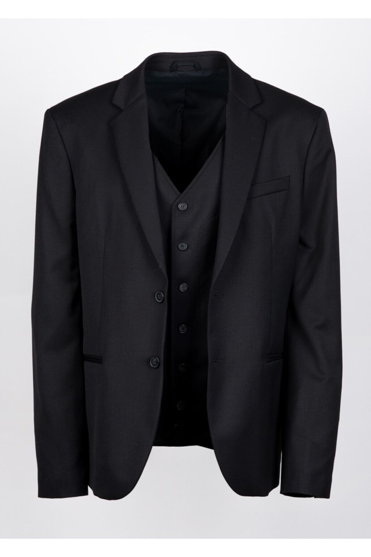 Siyah % 99 Lana Virgin Wool %1 Elastan Yelek Detaylı Ceket Made In Romania