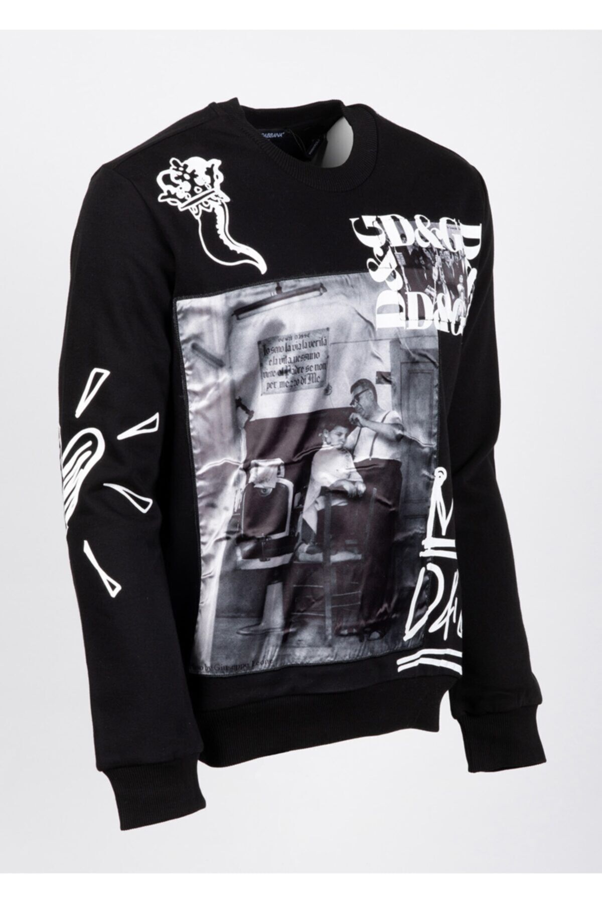 Dolce&Gabbana Cotton Black Desenli Sweatshirt