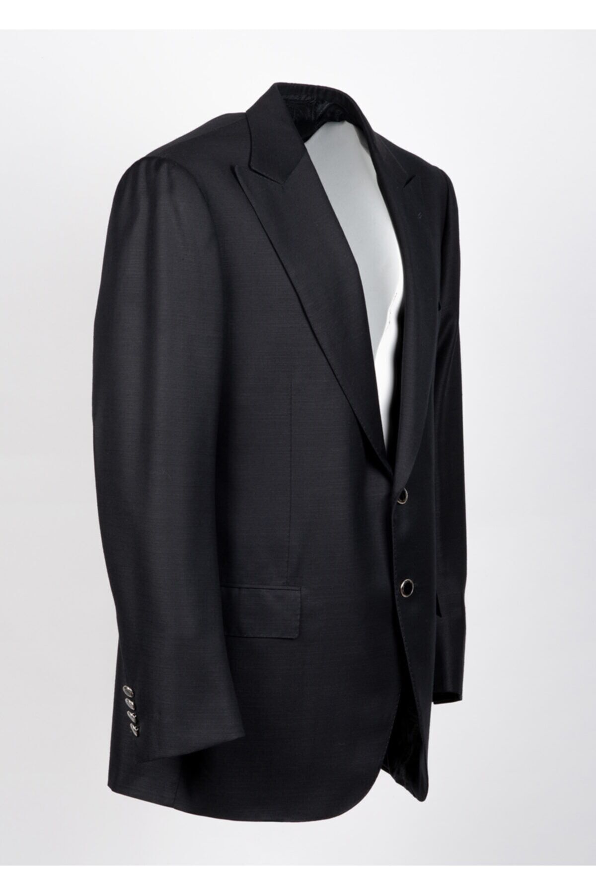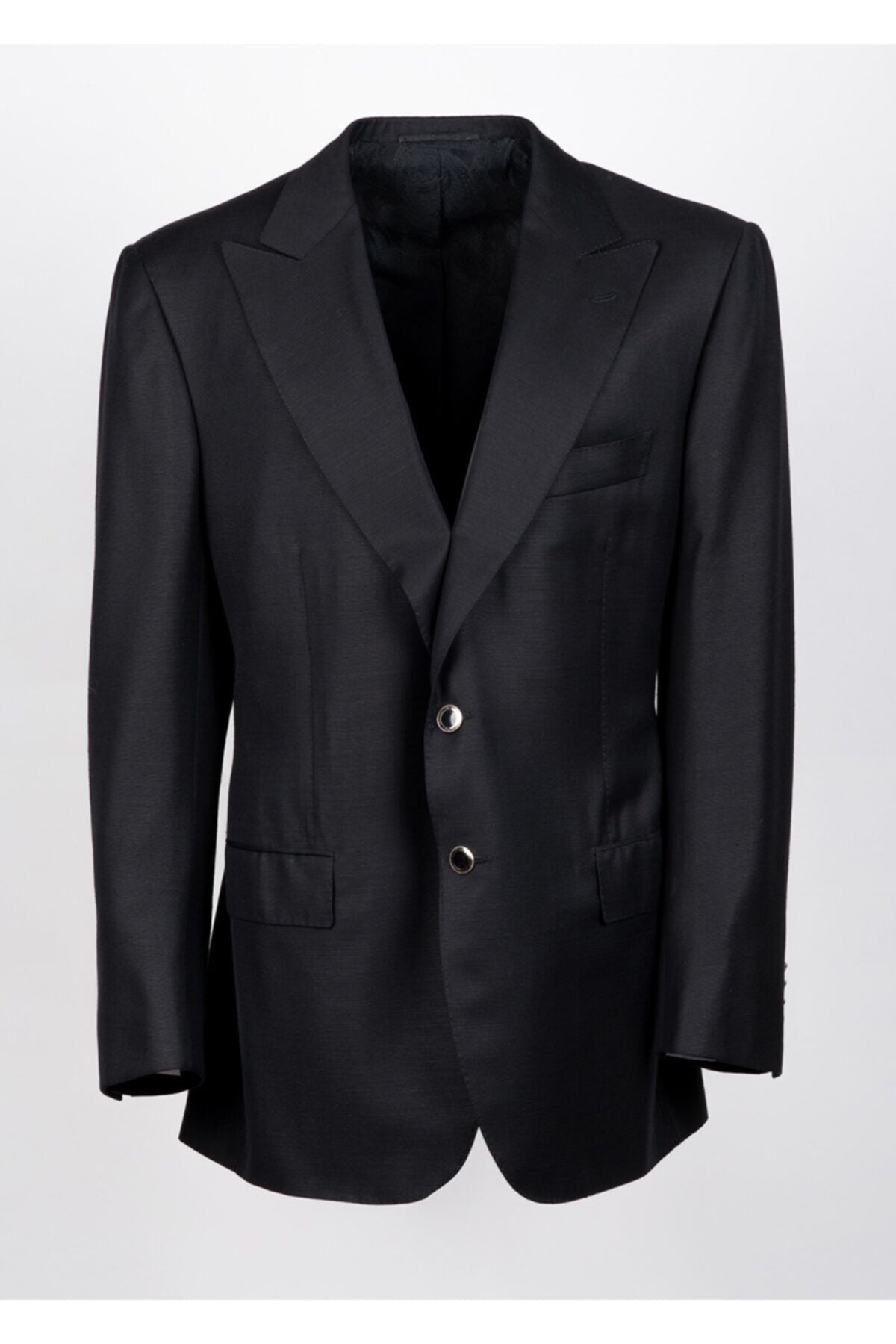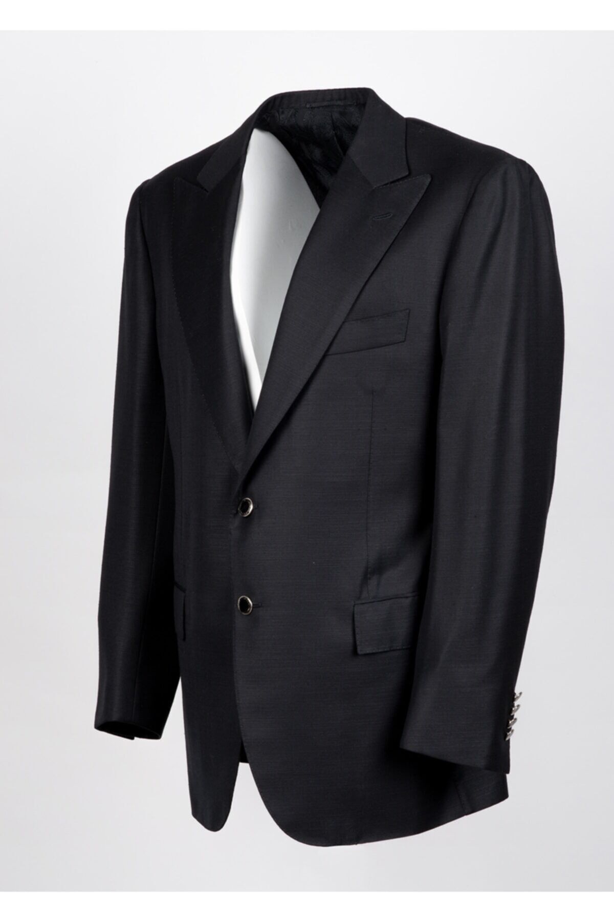 Siyah % 55 Lana Wool % 45 Silk Düğme Detaylı Blazer Ceket Made in Italy