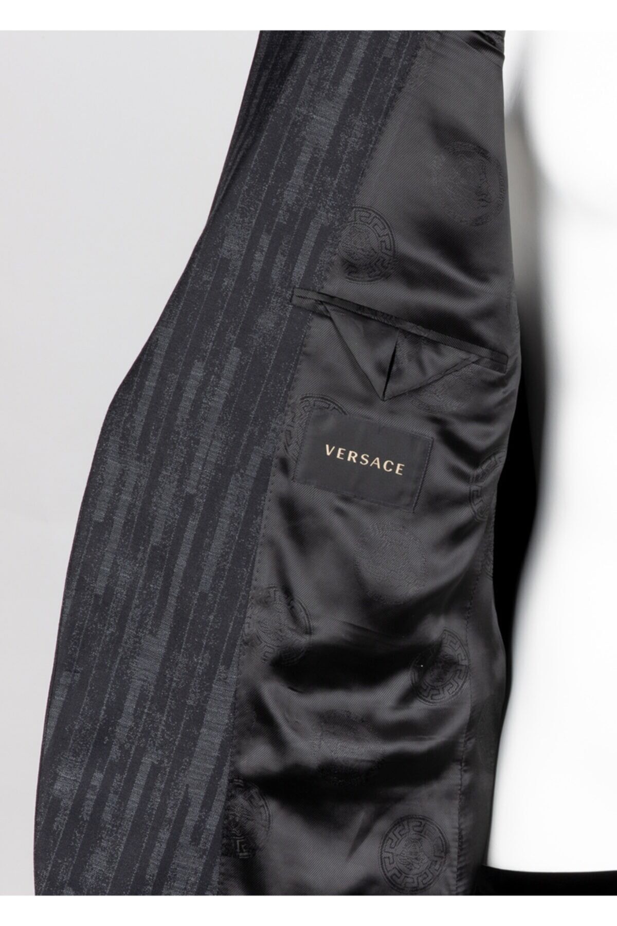 Siyah Gri Renk Desenli % 100 Lana Wool Gıannı Versace Tailor Made Blazer Ceket , Made In Italy
