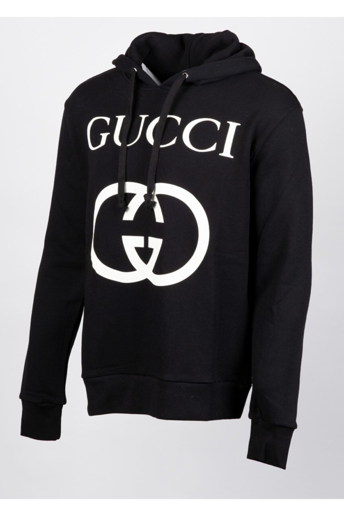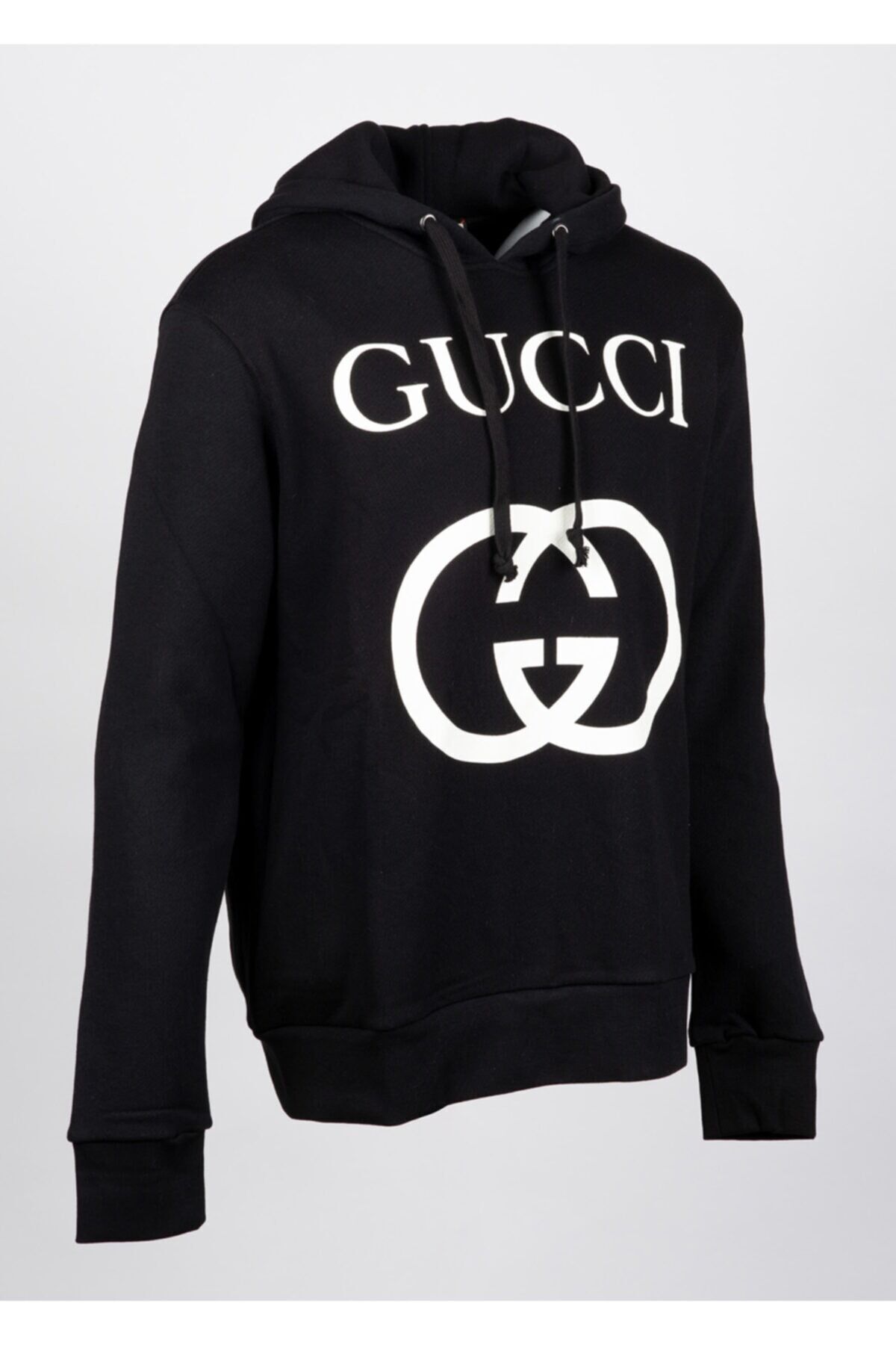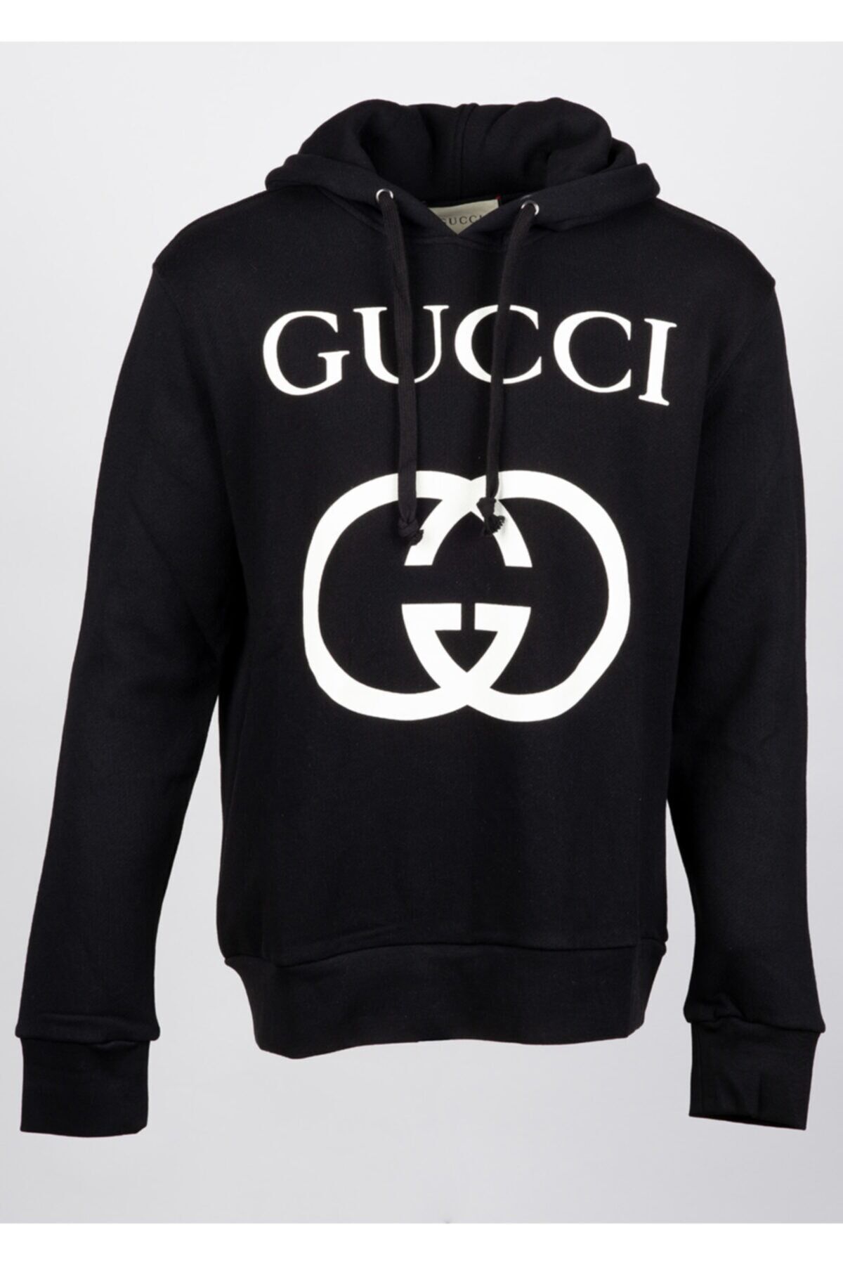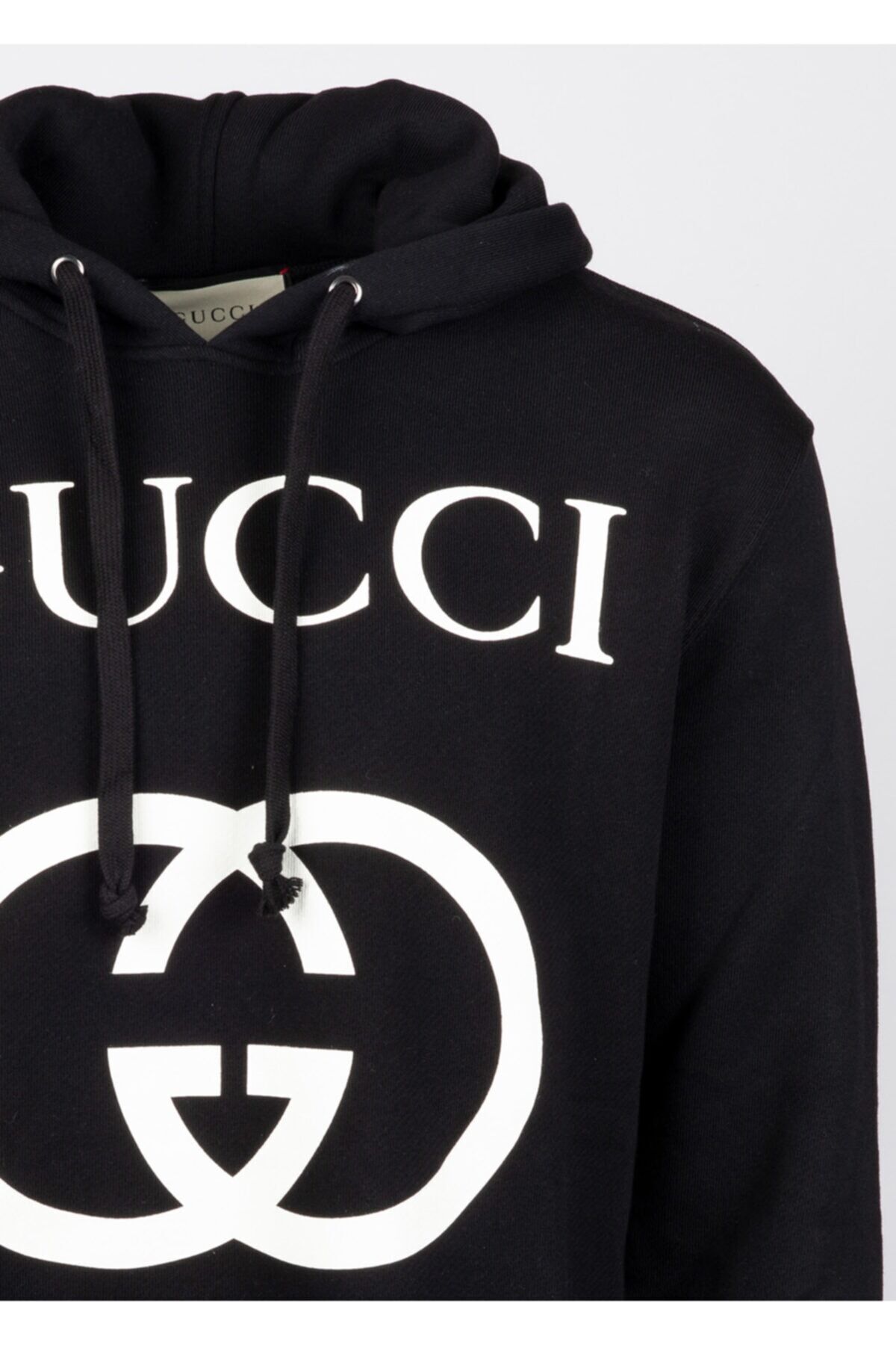 Gucci siyah hooded with ınterlocking g kapüşonlu logo ve marka baskılı sweatshirt