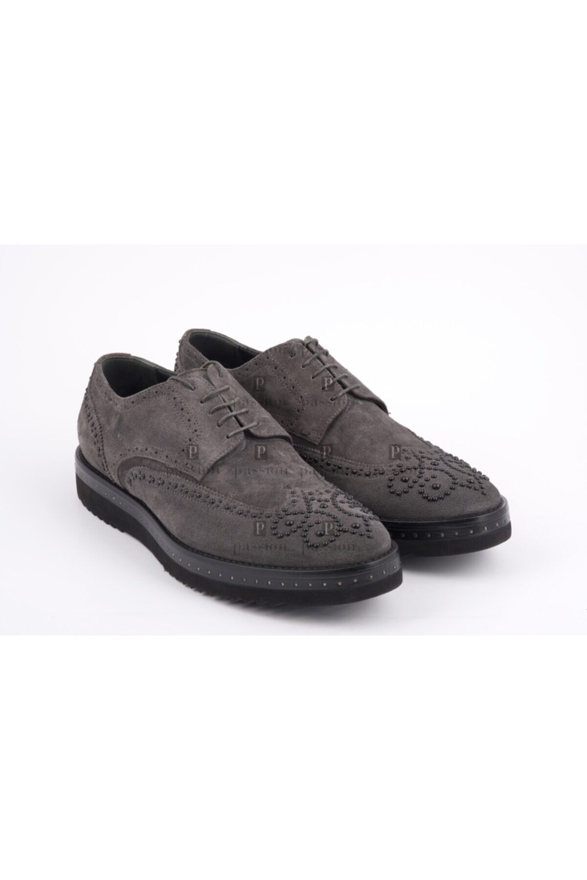 Koyu Gri Trok İşlemeli Bağcıklı Ayakkabı