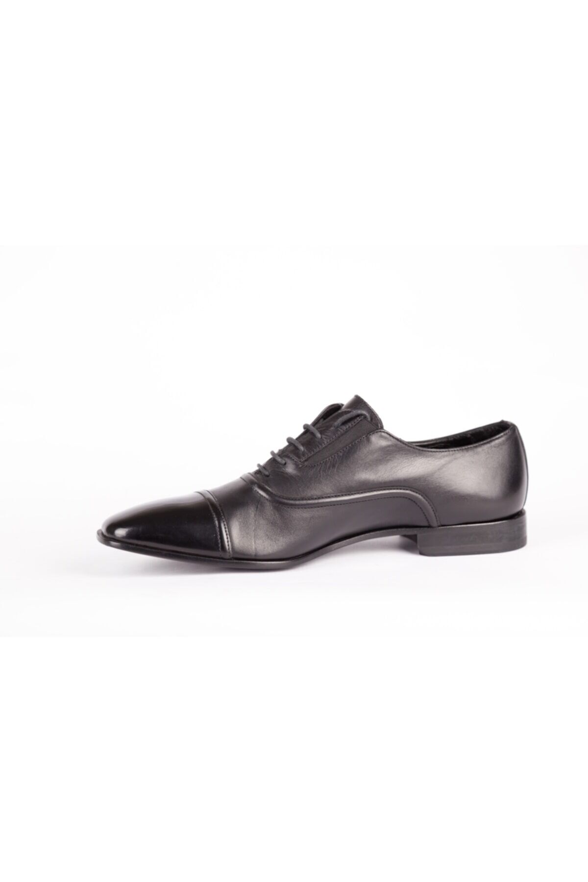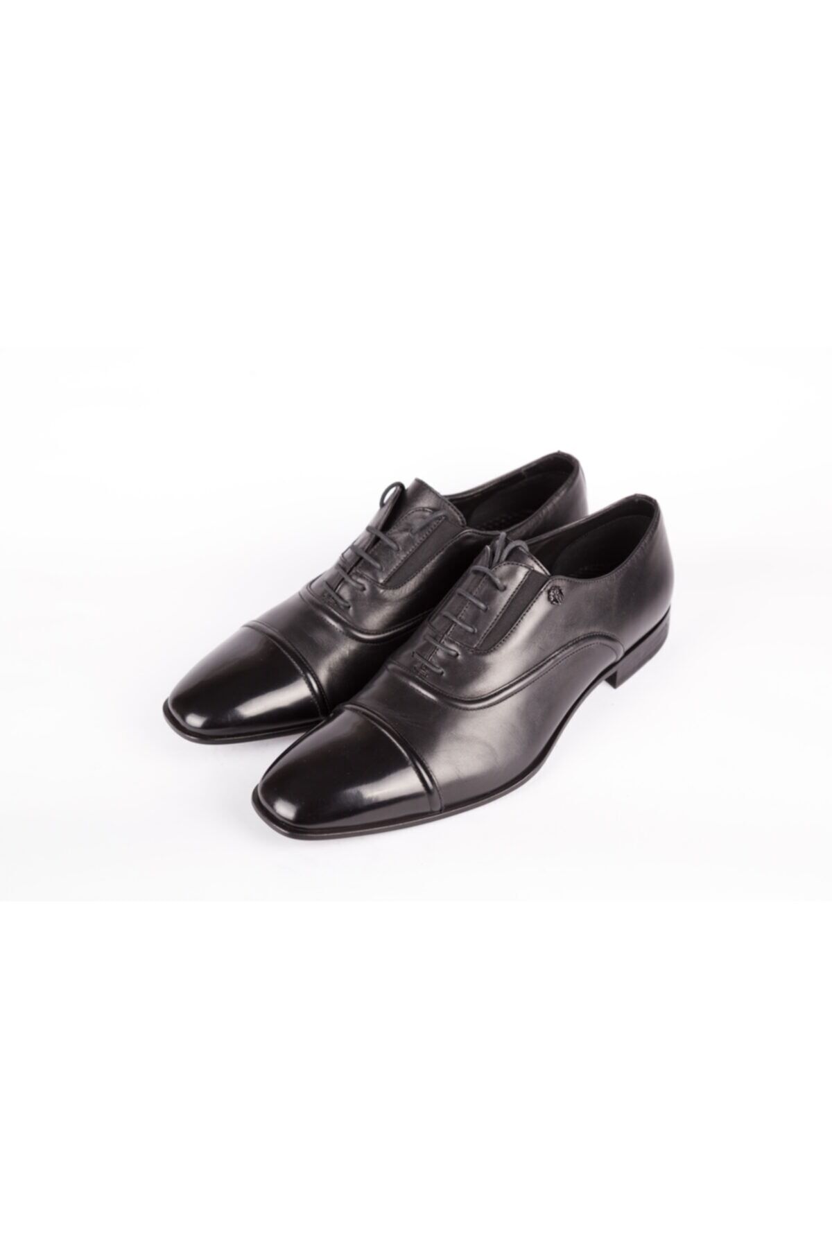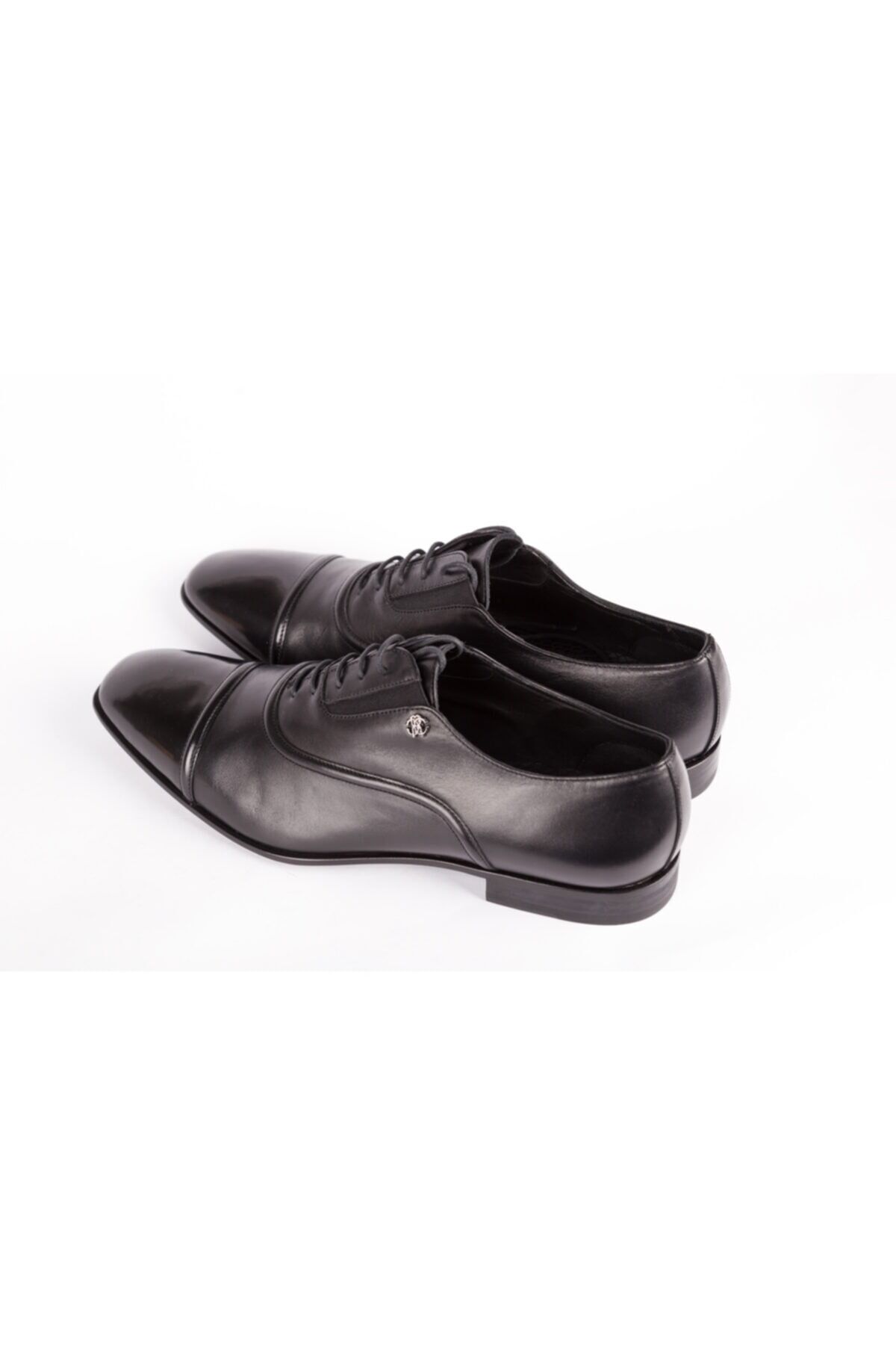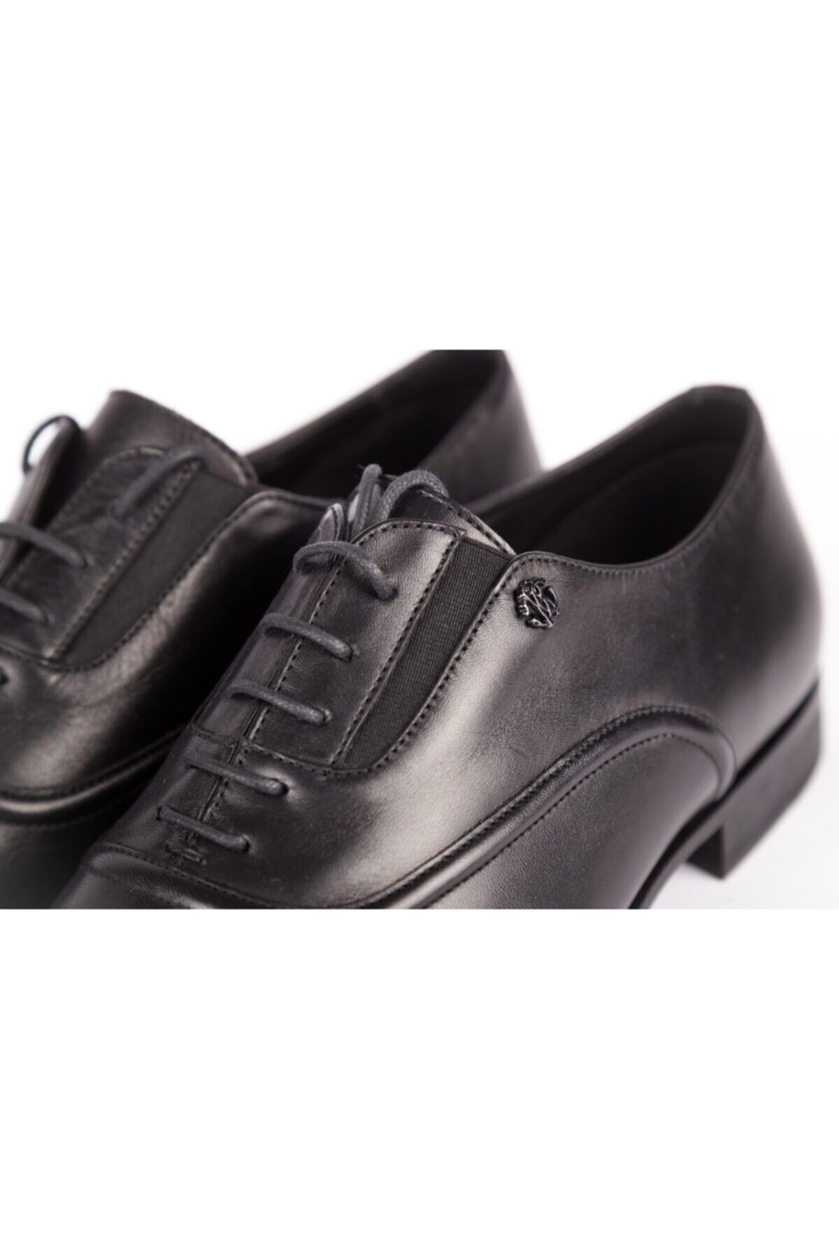 SİYAH DERİ, LOGO DETAYLI BAĞCIKLI AYAKKABI, MADE IN ITALY;
