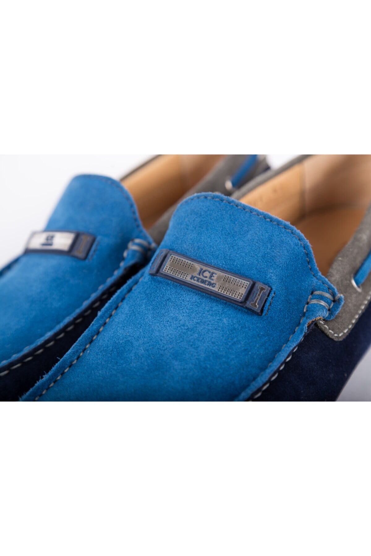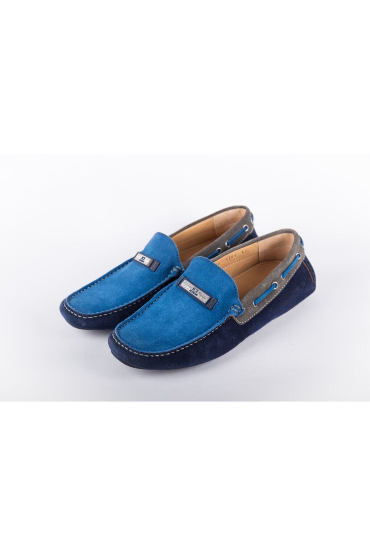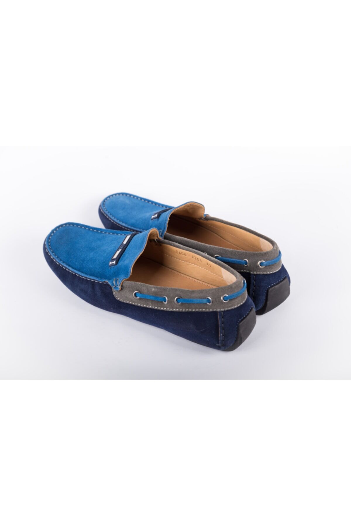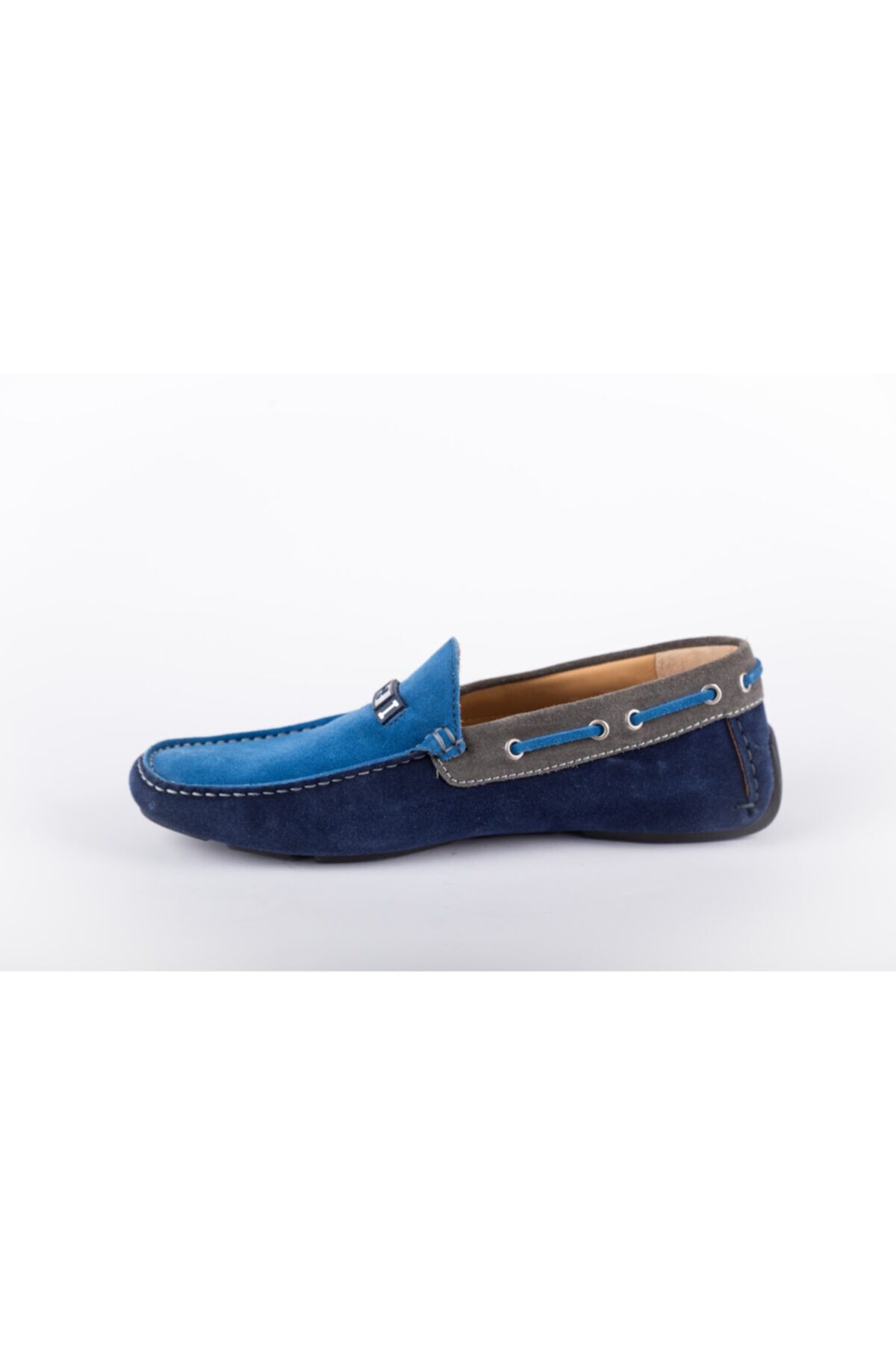 MAVİ LACİVERT SÜET DERİ,LOGO DETAYLI LOAFER, MADE IN ITALY