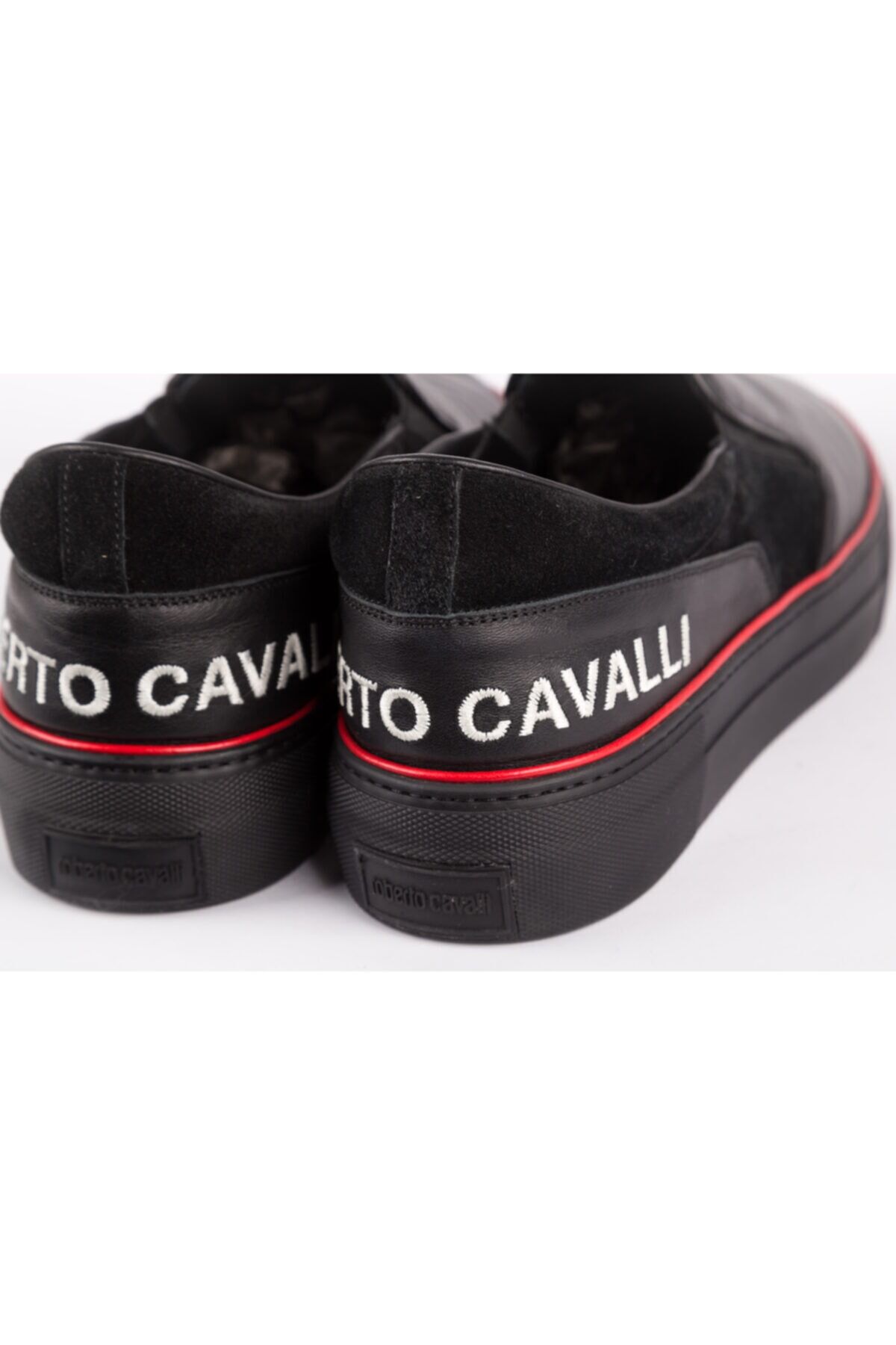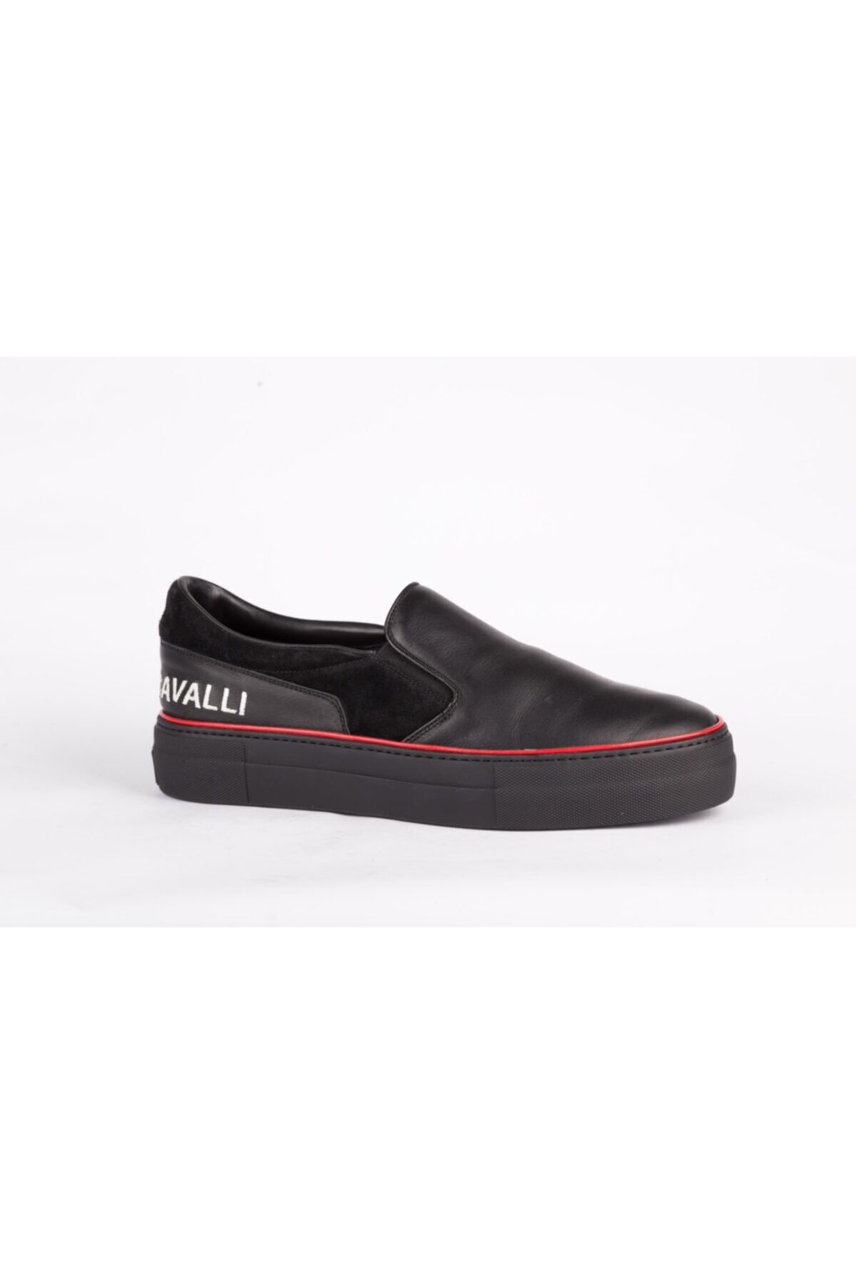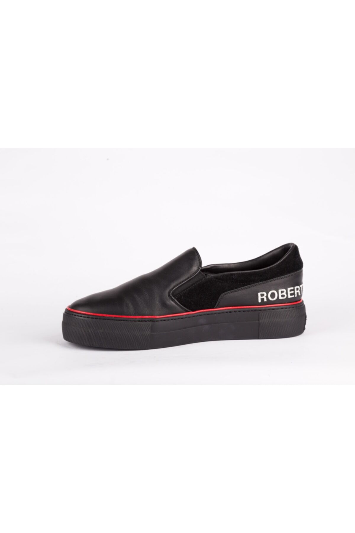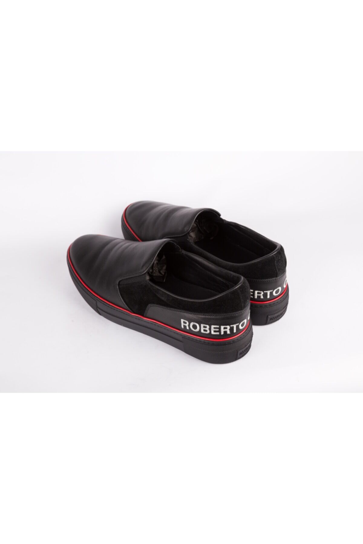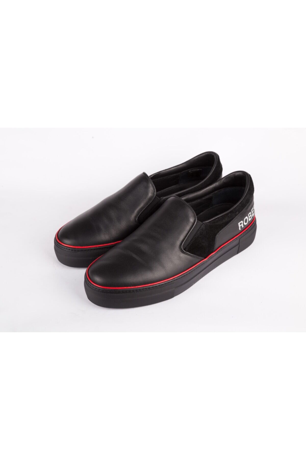 SİYAH DERİ, KIRMIZI ÇİZGİ VE MARKA DETAYLI LOAFER, MADE IN ITALY