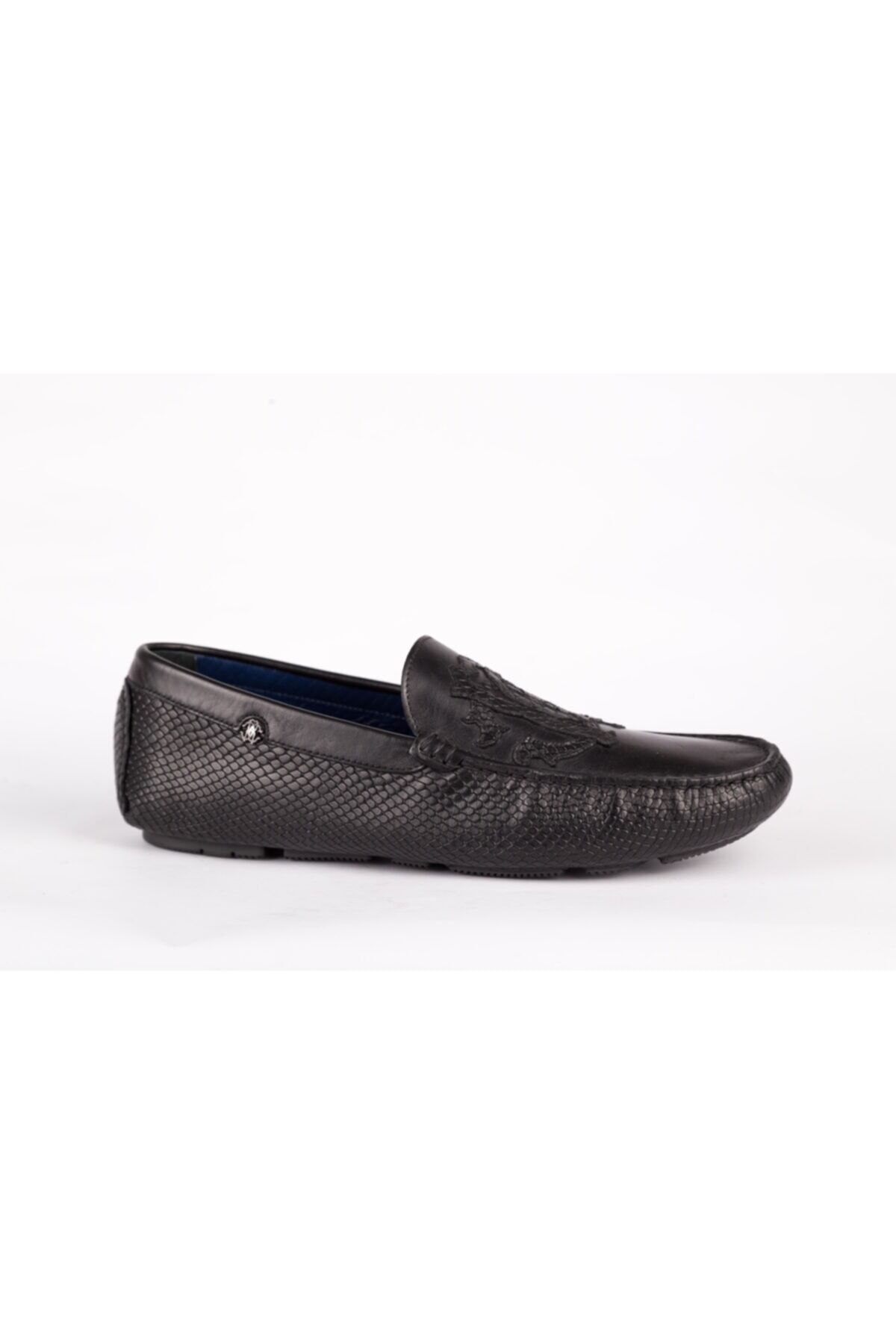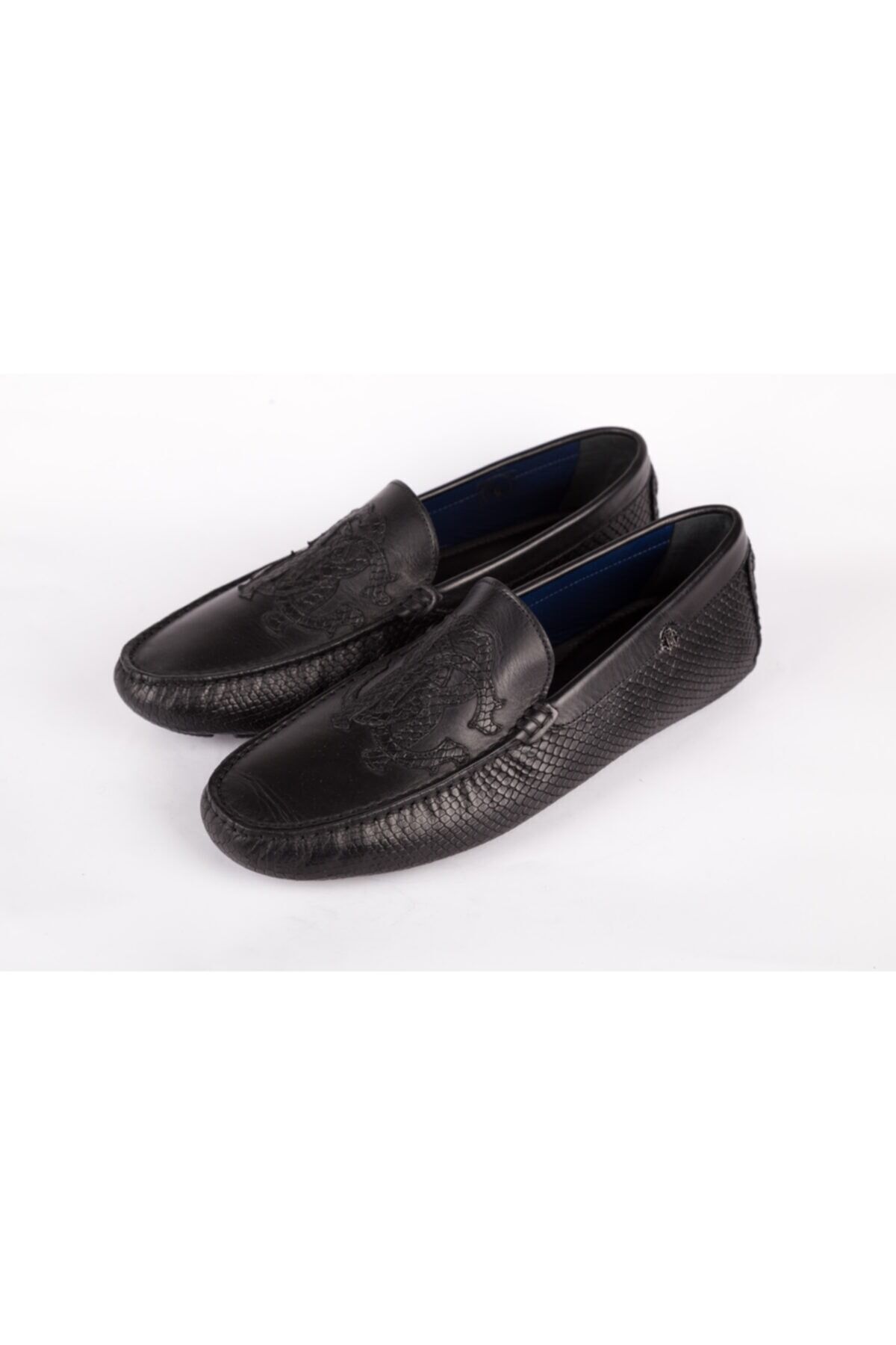 SİYAH DERİ, LOGO DETAYLI LOAFER, MADE IN ITALY