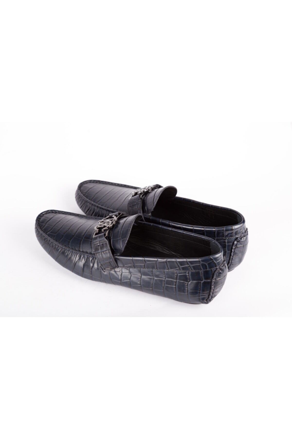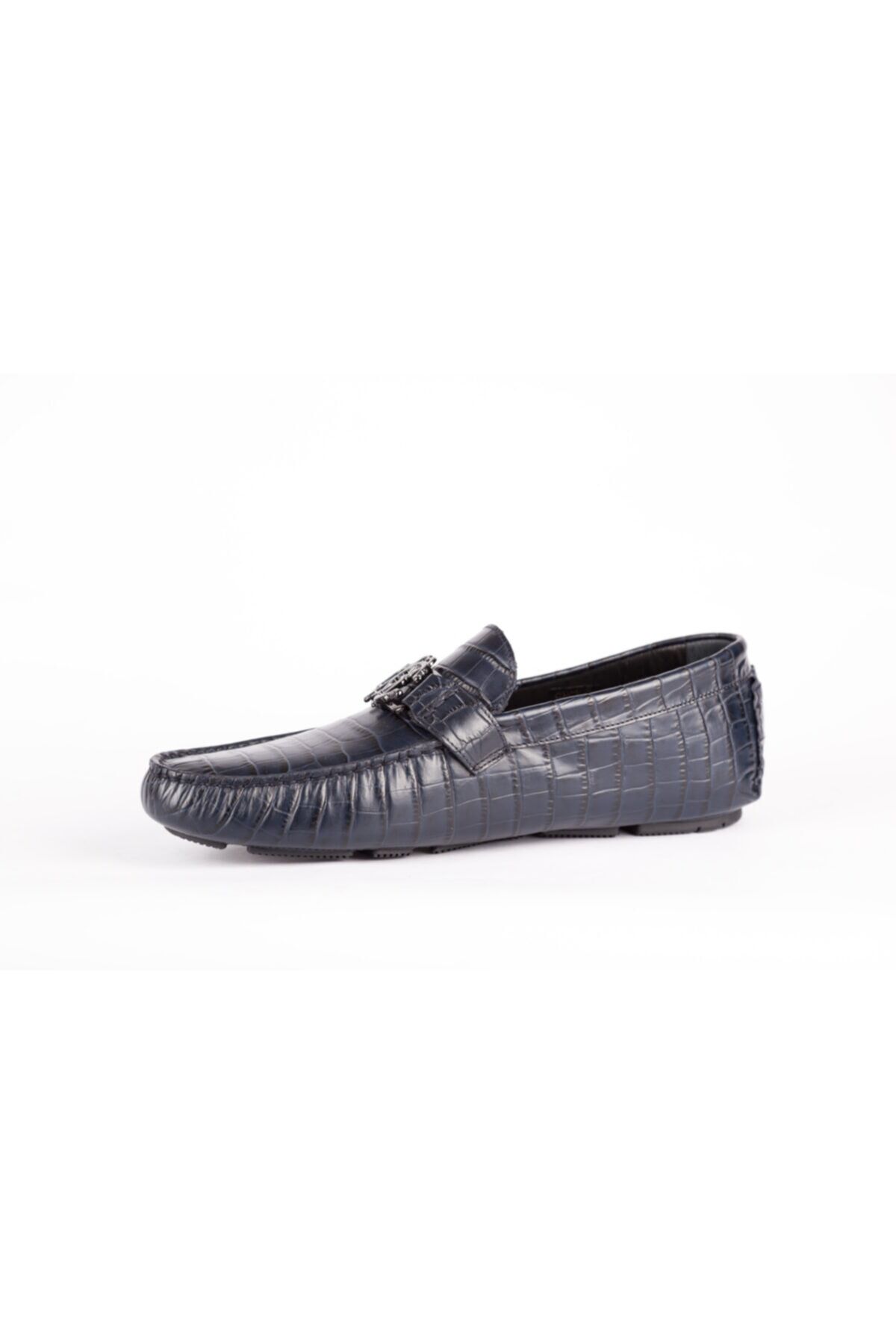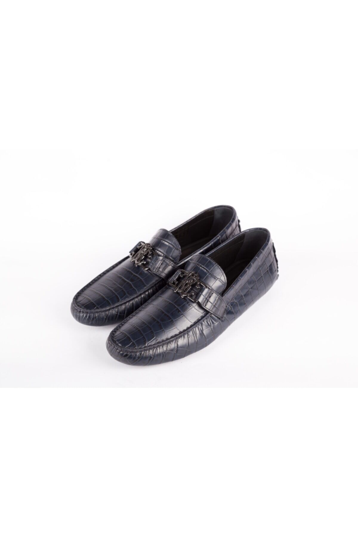 KOYU MAVİ DERİ, METAL LOGO DETAYLI LOAFER, MADE IN ITALY