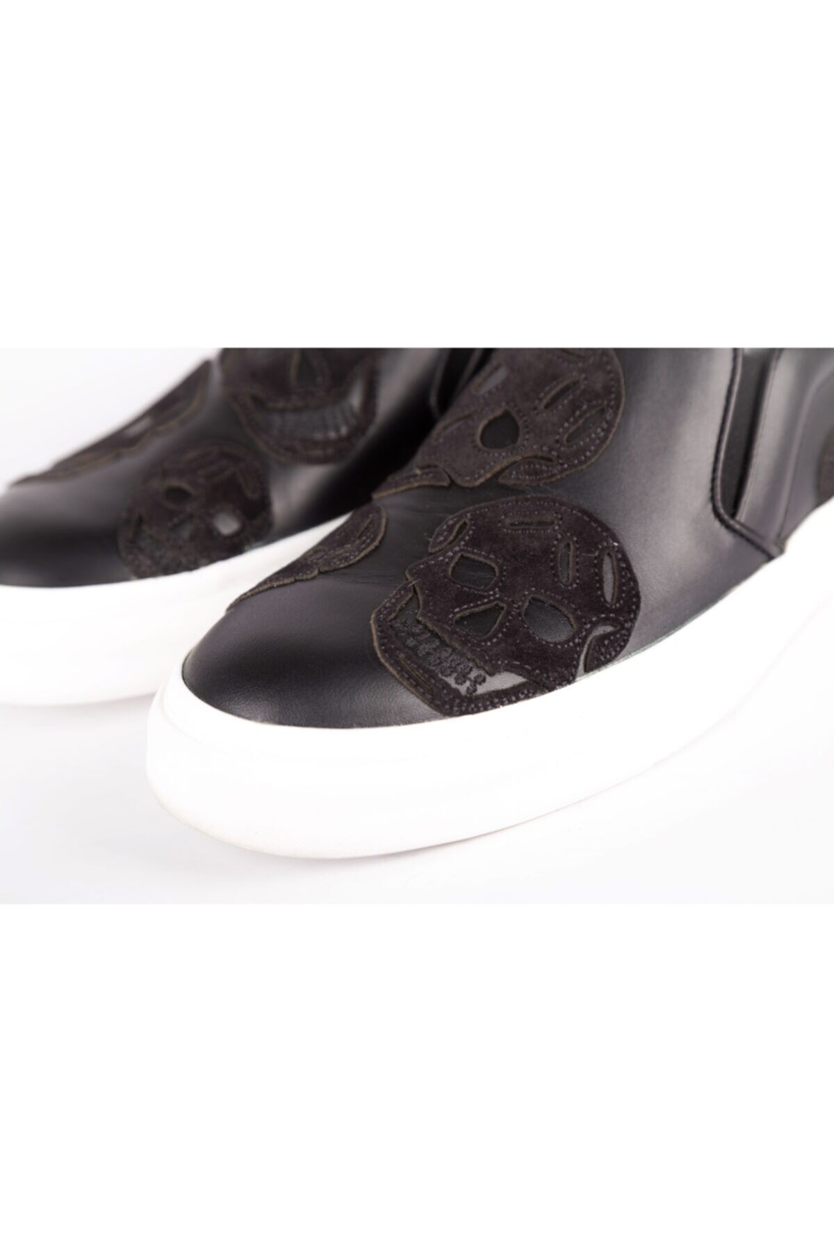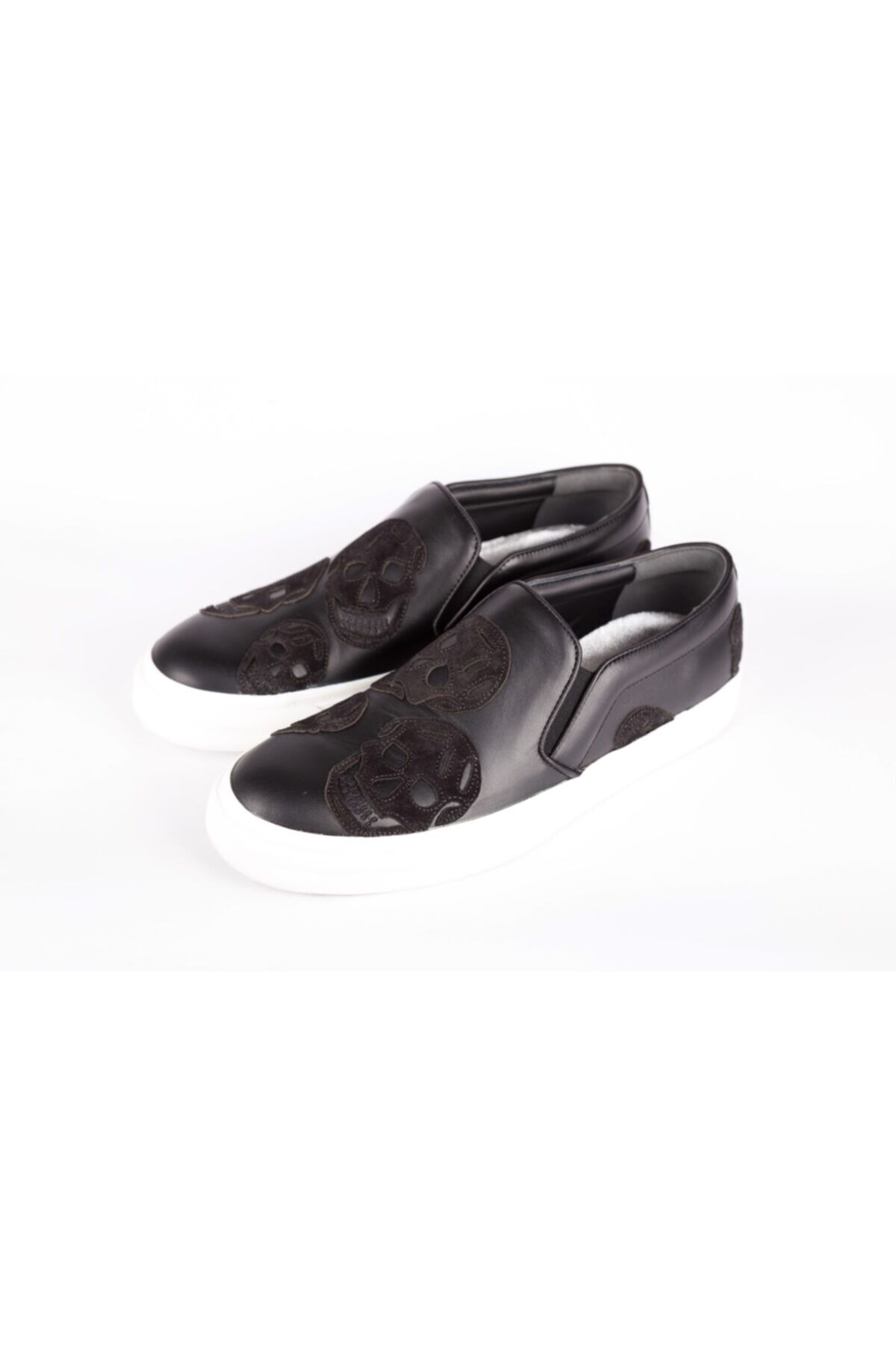 ALEXANDER MCQUEEN SİYAH DERİ, ÜZERİ SÜET DESENLİ LOAFER, MADE IN ITALY
