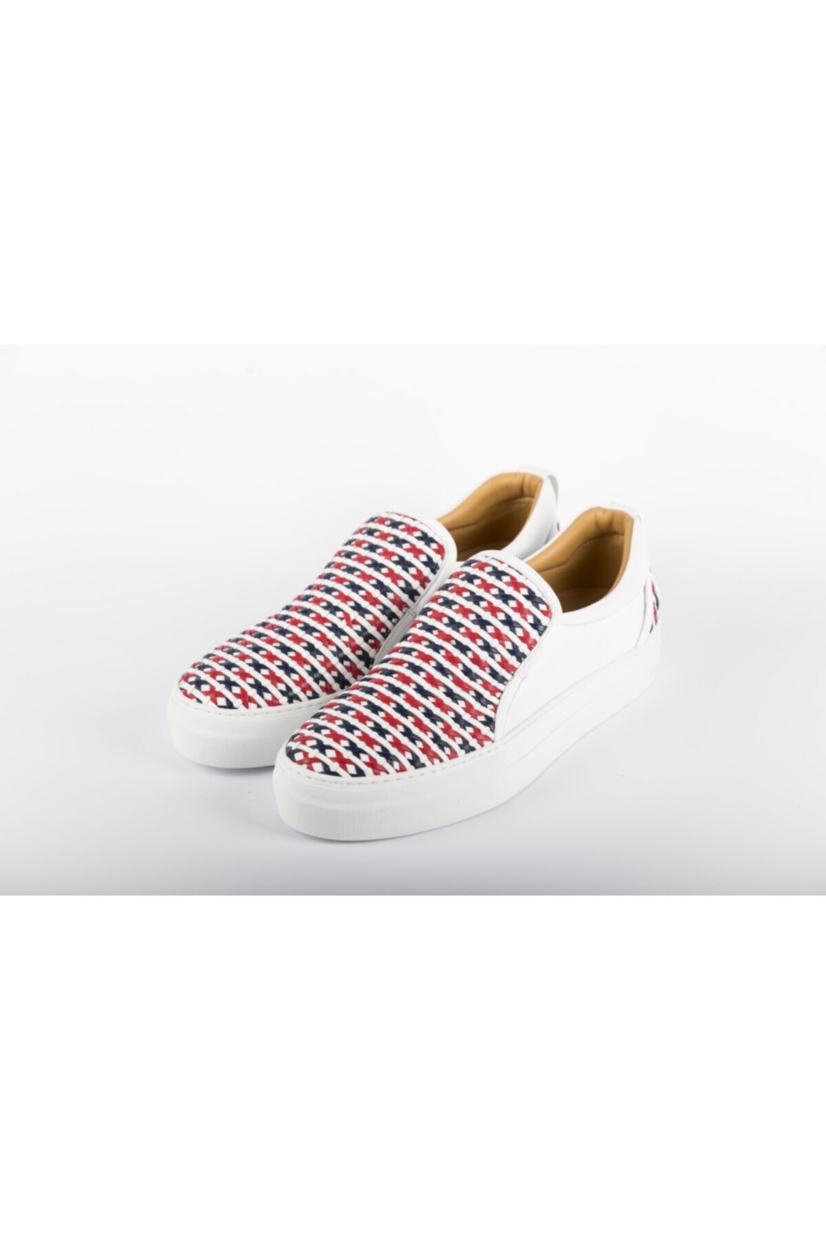*40 MM kontrast kırmızı ve lacivert dokuma detayı