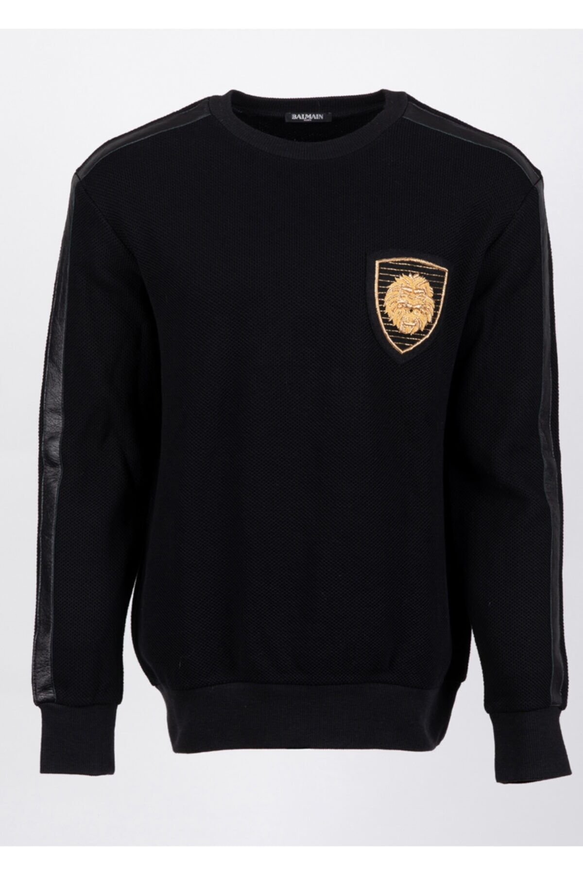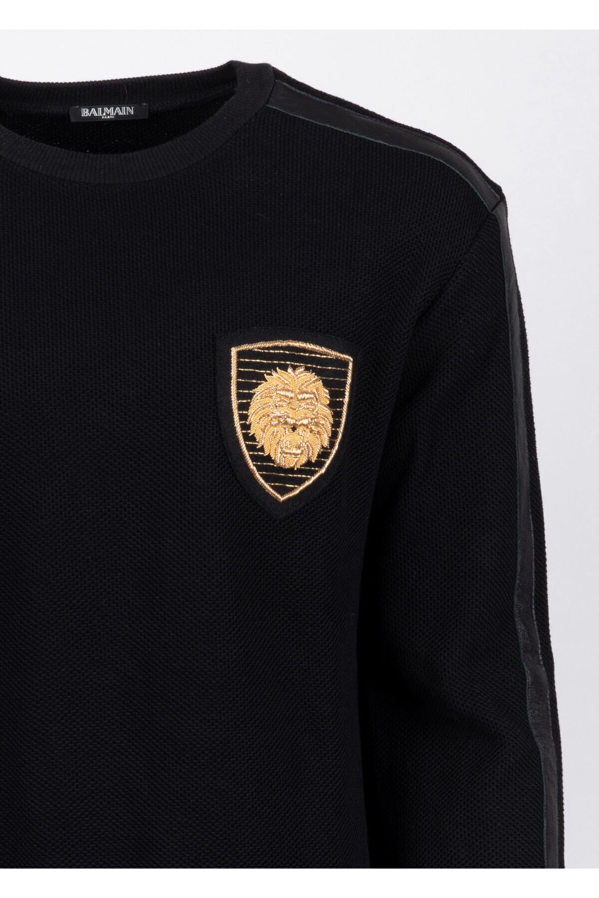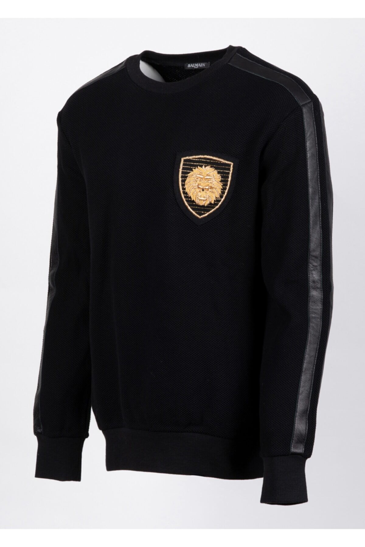 Aslan Patchli Kolları Deri Şerit Detaylı Sweatshirt