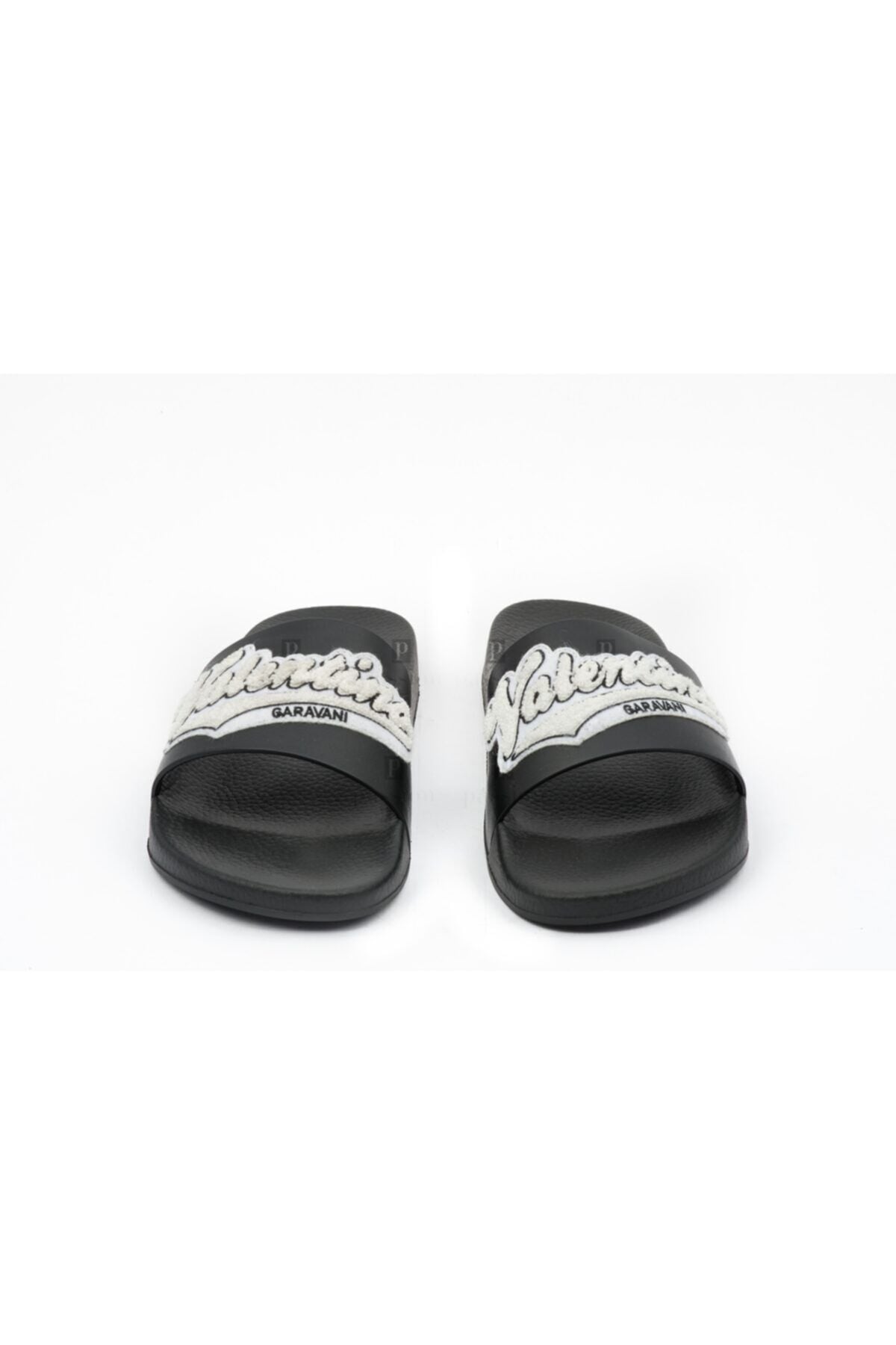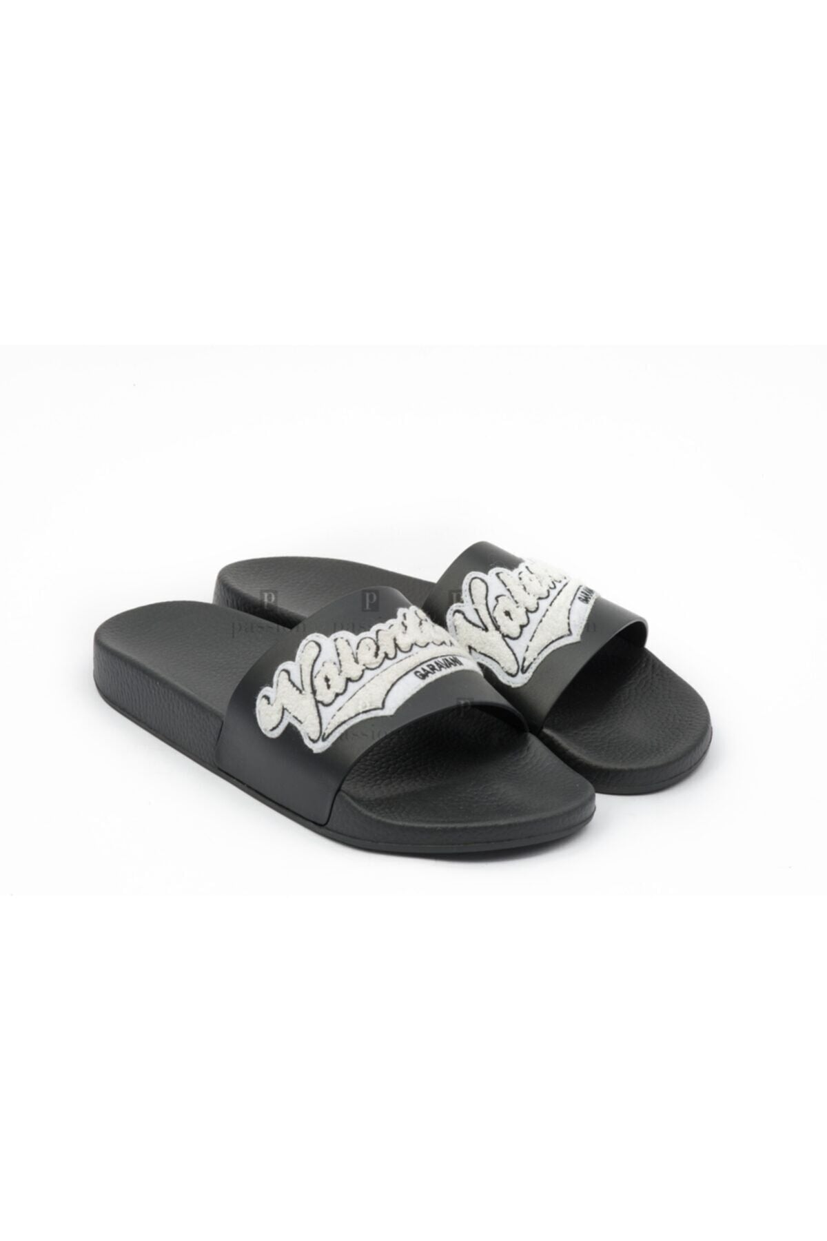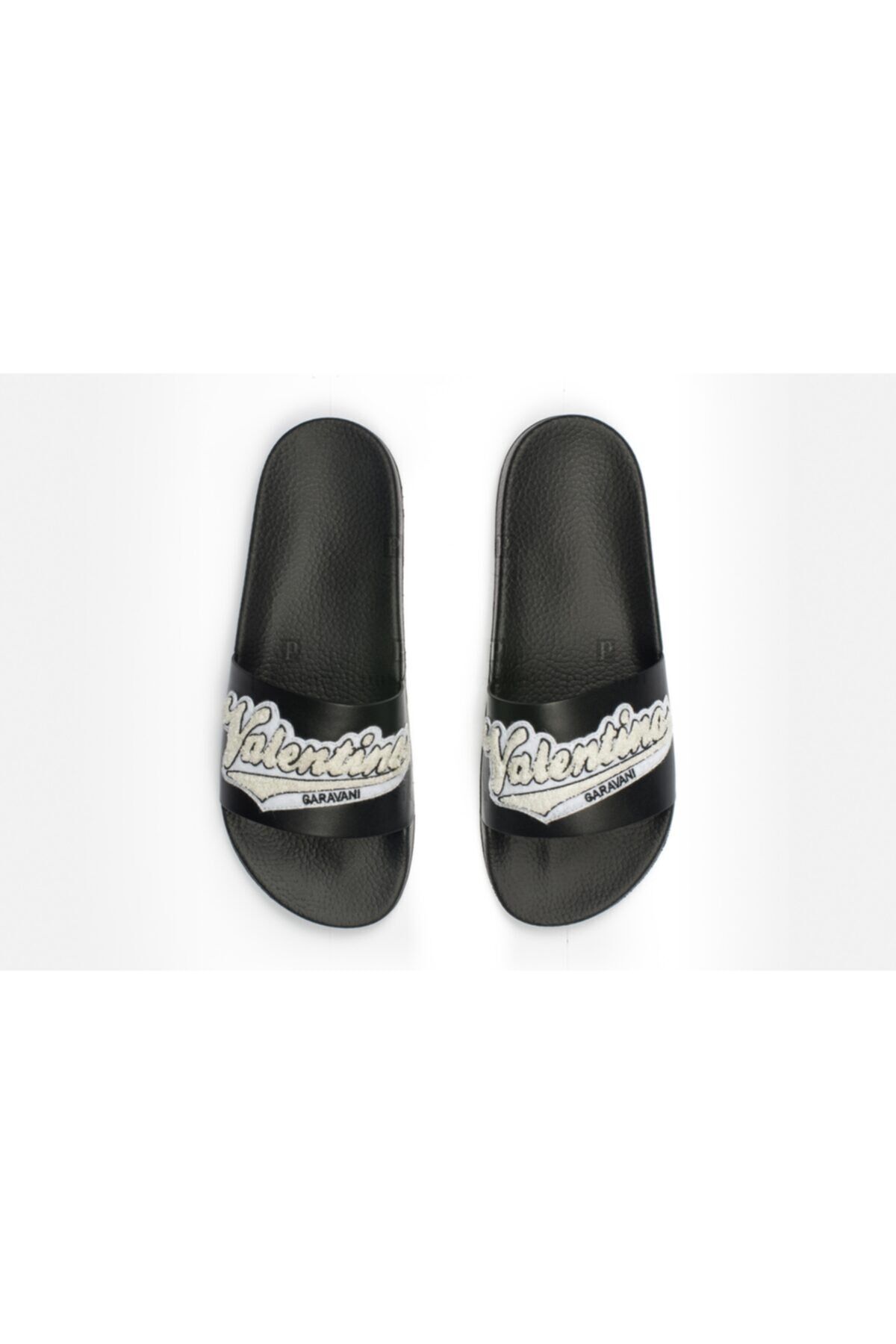 Valentino Garavani Siyah Renk Marka İşleme Detaylı Terlik Made in Italy